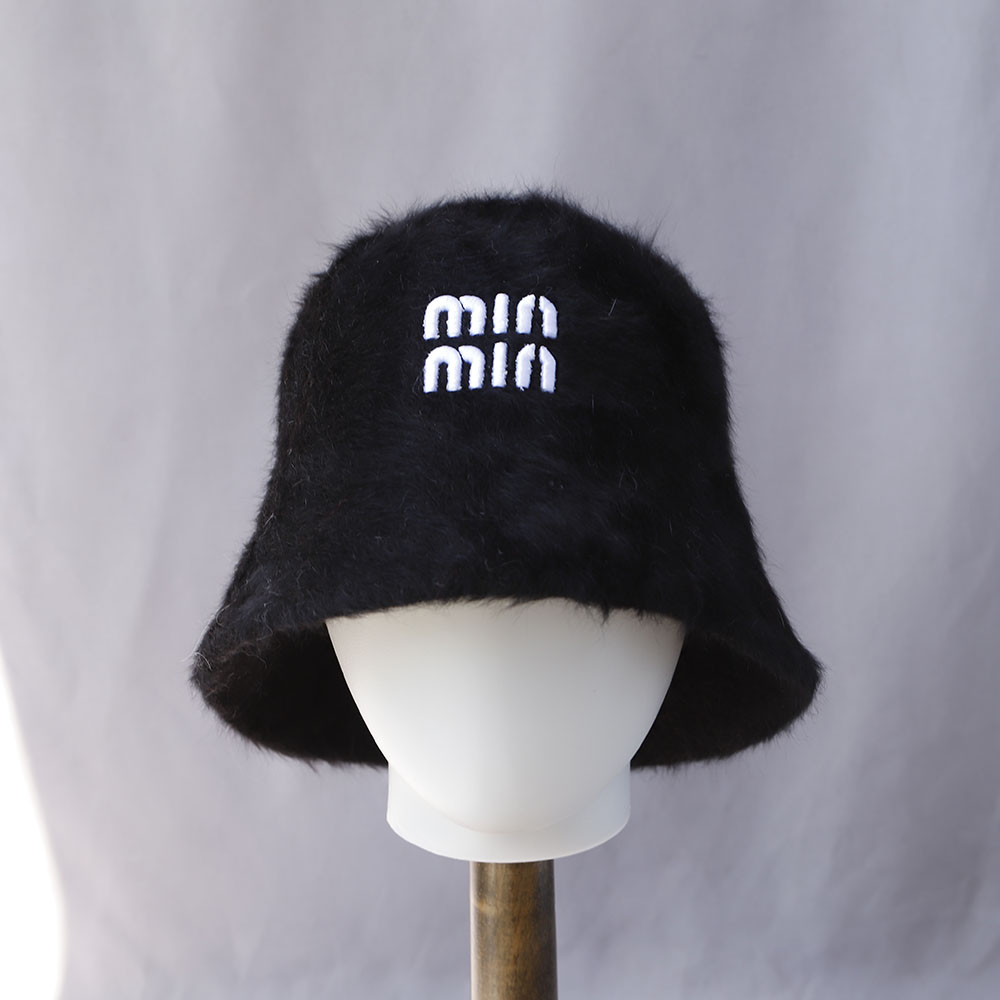 Winter Bucket Hats For Women, Soft Warm Plush Rabbit Fur, Knitted Fisherman Hat With Letter blue