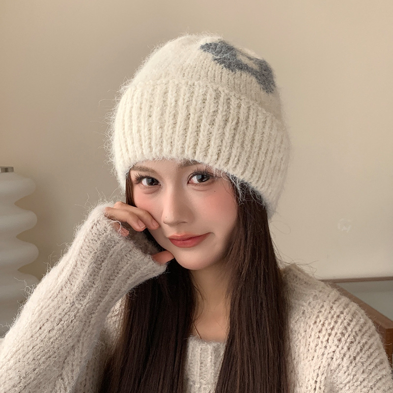 Autumn Winter Solid Color Knitted Bucket Hat Women Faux Mink Cashmere Blend Artistic Versatile Sun Cap bean Paste