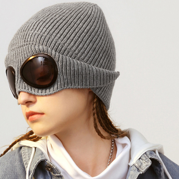 Knitted Ski Mask Cap, Outdoor Winter Warm Cycling Beanie Hat For Women And Men, Windproof grey