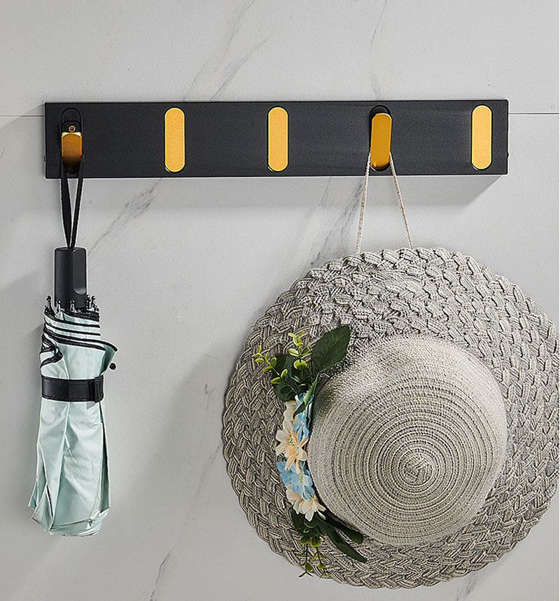 Self closing Wall Hooks, Invisible Folding Hanger, Coat And Towel Rack For Bathroom, Kitchen, And Back Door grey 5 Hooks