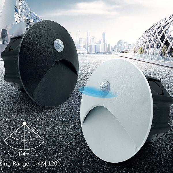 Lighting LED Sensor Embedded Wall Lamps, Waterproof Outside Night Light For Steps cold Light switch Control Black 1w