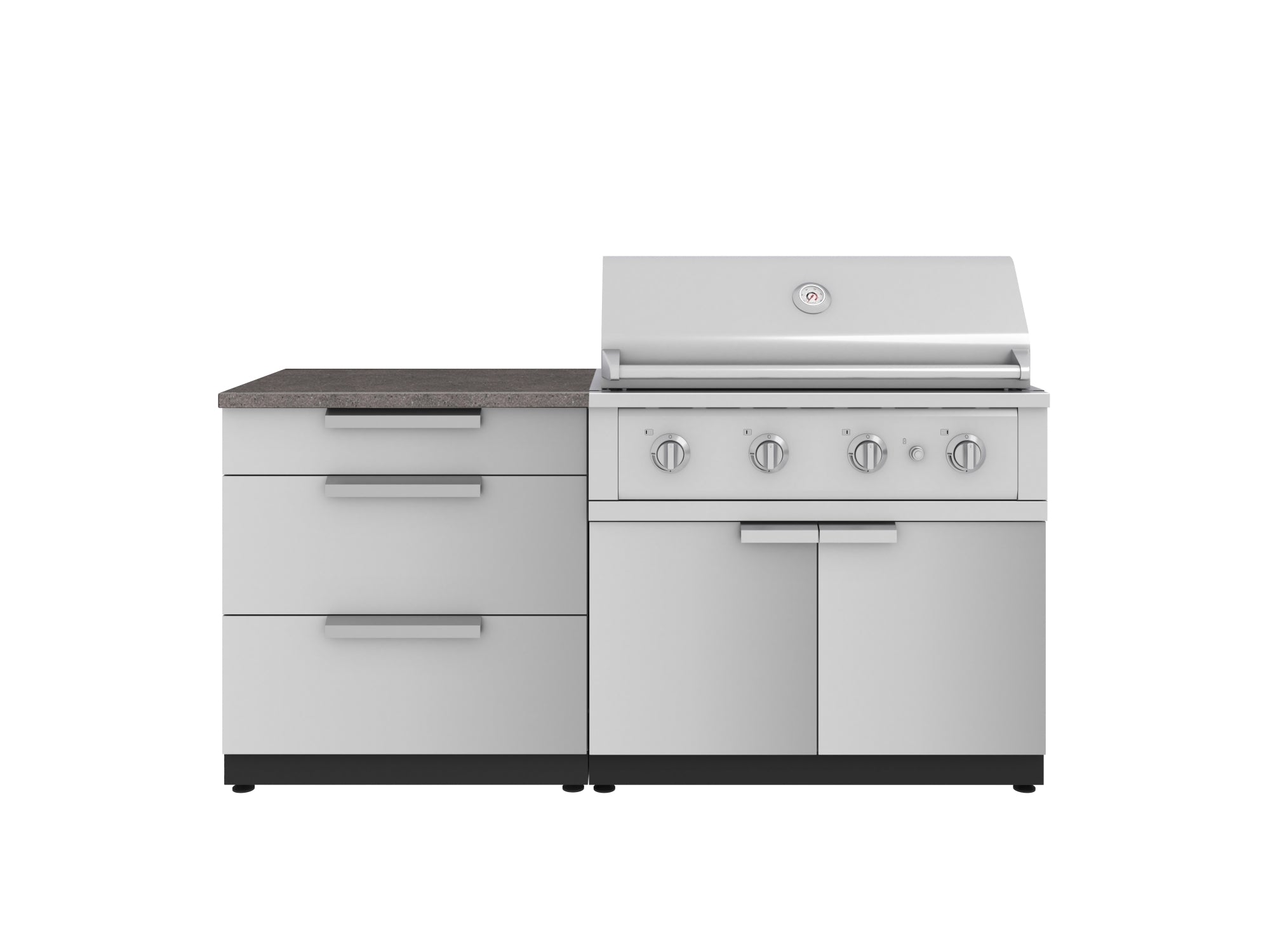 NewAge Outdoor Kitchens Stainless-Steel 4-Piece Cabinet Set with 3 Drawer, Grill Cabinet, Performance Grill, and Countertop