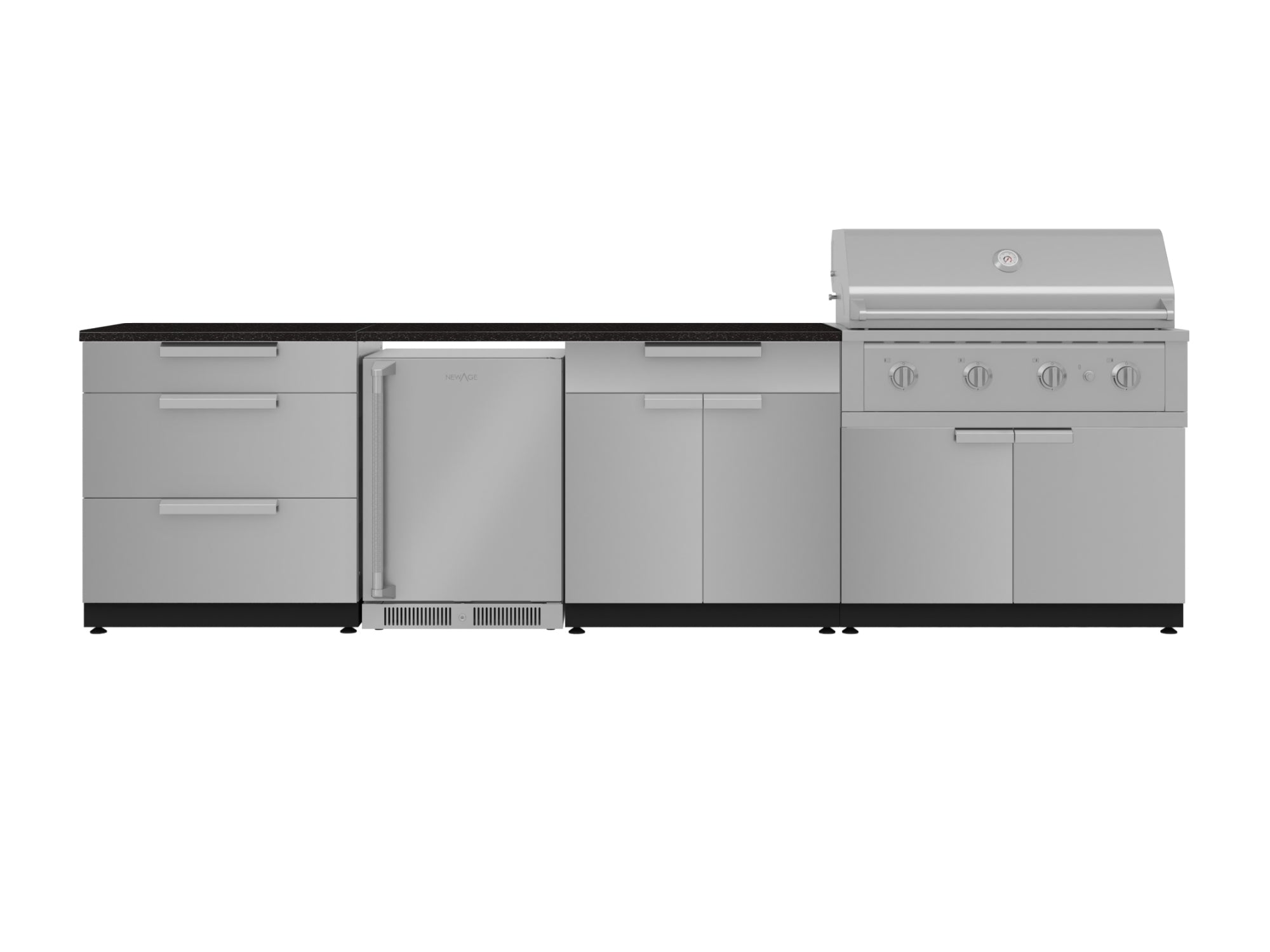 NewAge Outdoor Kitchens Stainless Steel 4-Piece Cabinet Set with 3 Drawer, Grill Cabinet, Performance Grill and Countertop