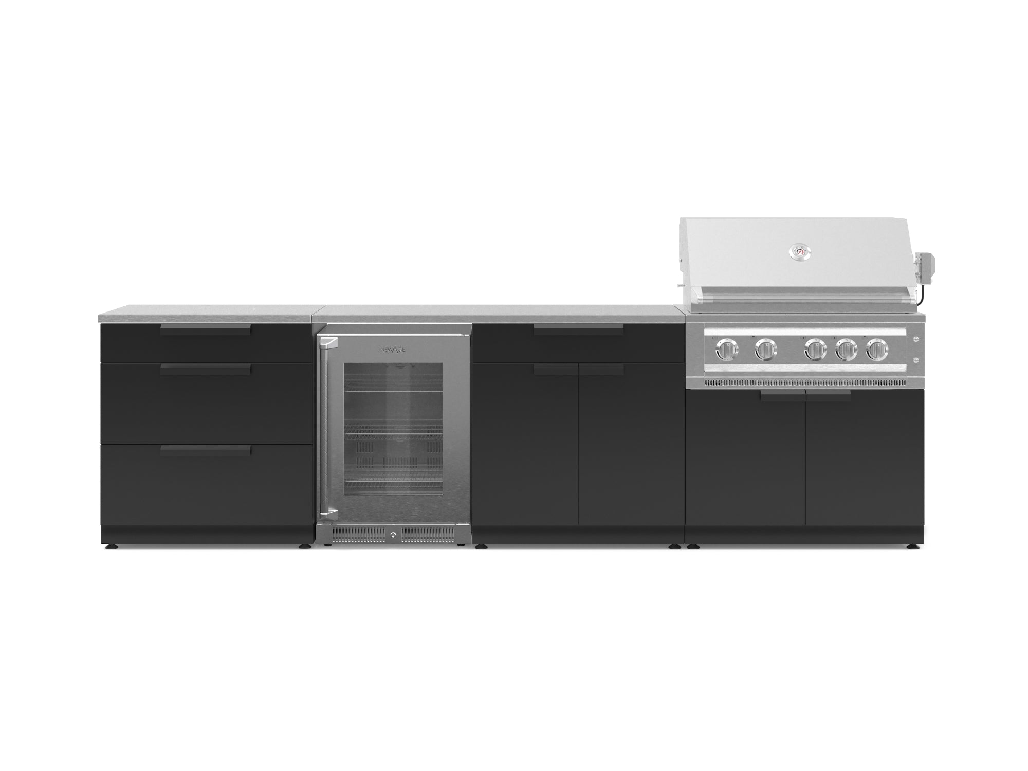NewAge Outdoor Kitchens Stainless-Steel 5-Piece Cabinet Set with 3-Drawer, Bar, Grill Cabinet, Performance Grill and Countertop