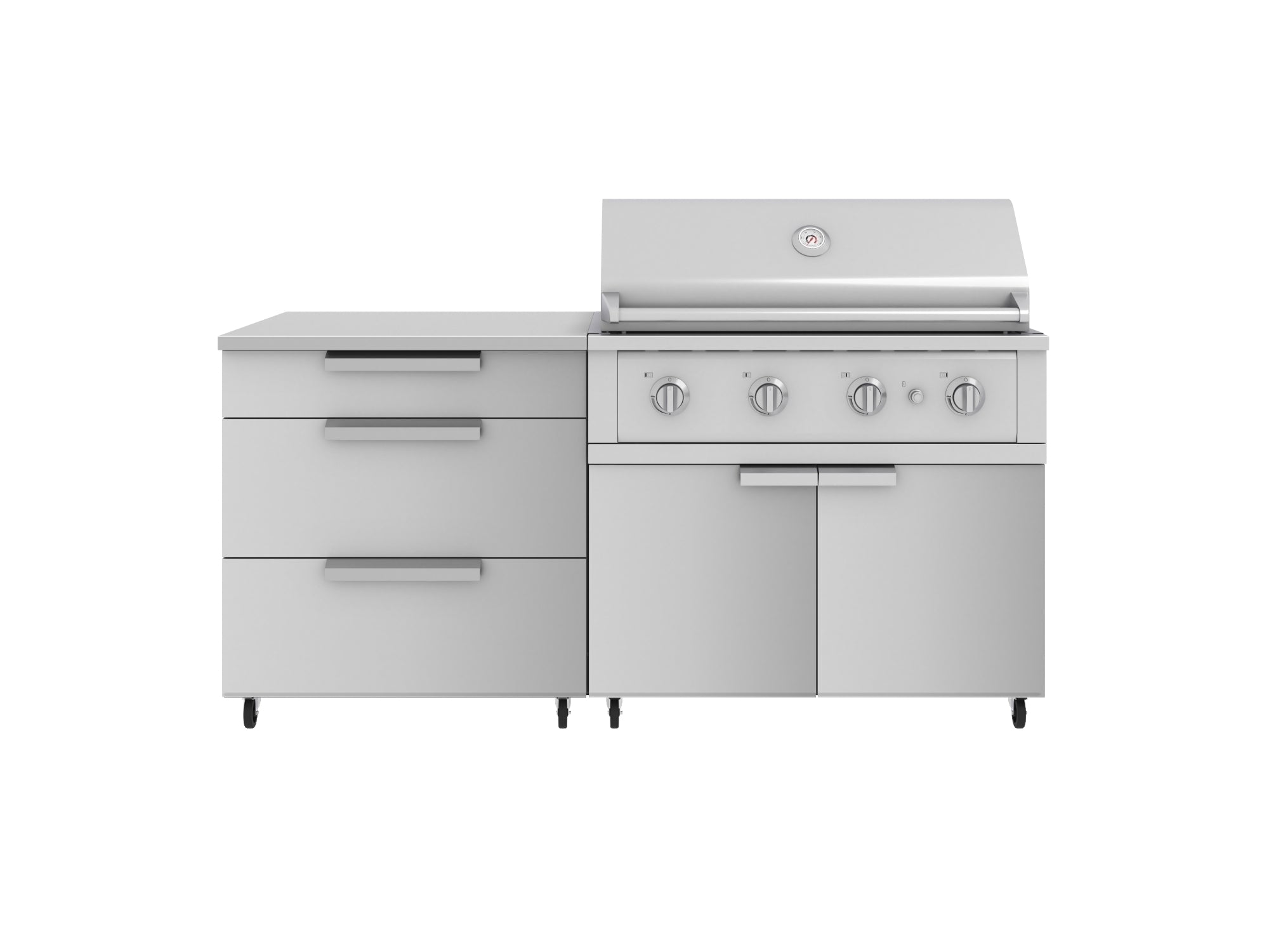 NewAge Outdoor Kitchens Stainless Steel 4-Piece Cabinet Set with Casters and 3 Drawer, Grill Cabinet, Performance Grill, Countertop