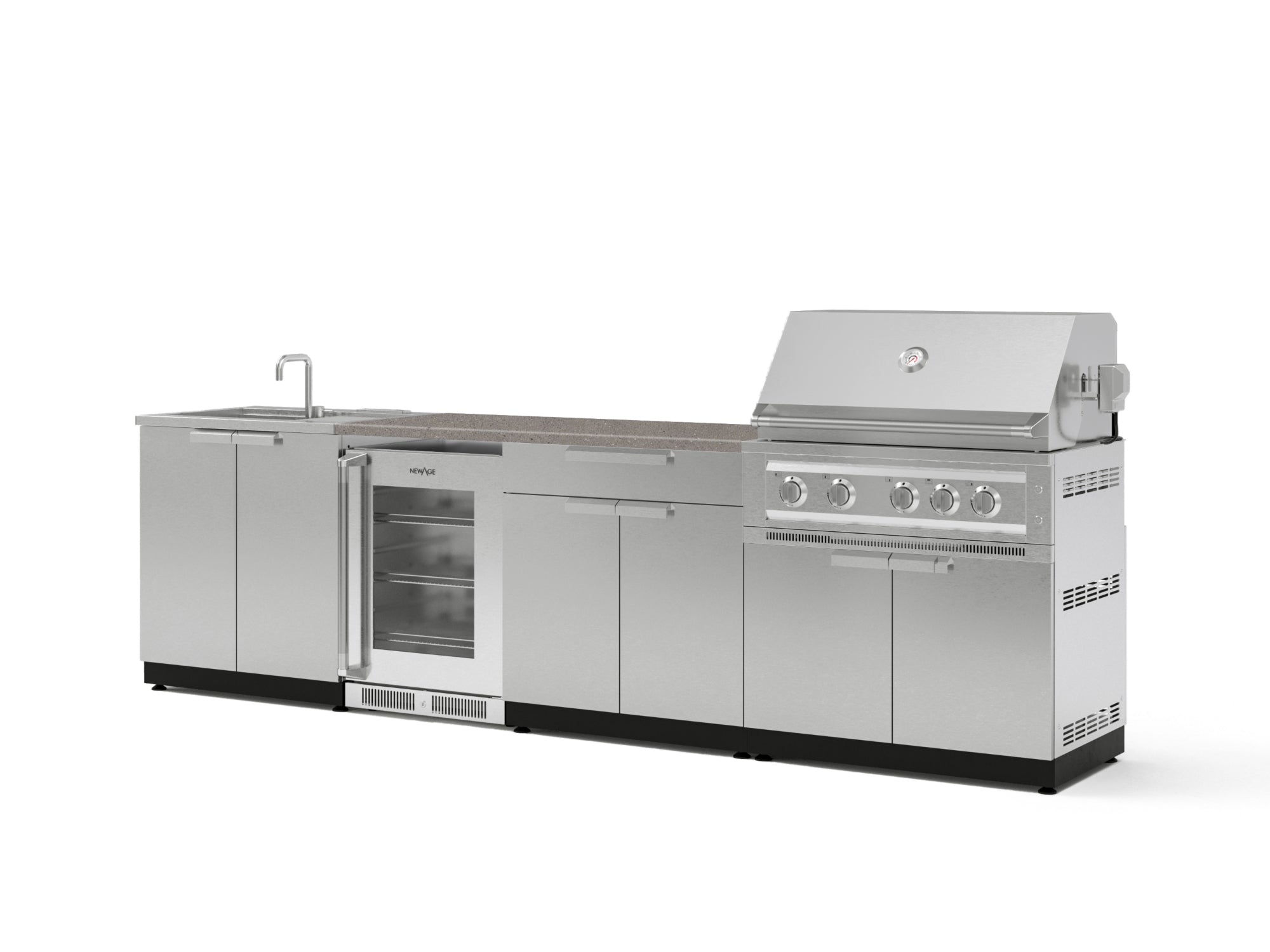 NewAge Outdoor Kitchens Stainless-Steel 5-Piece Cabinet Set with Bar, Sink, Grill Cabinet, Performance Grill, and Countertop