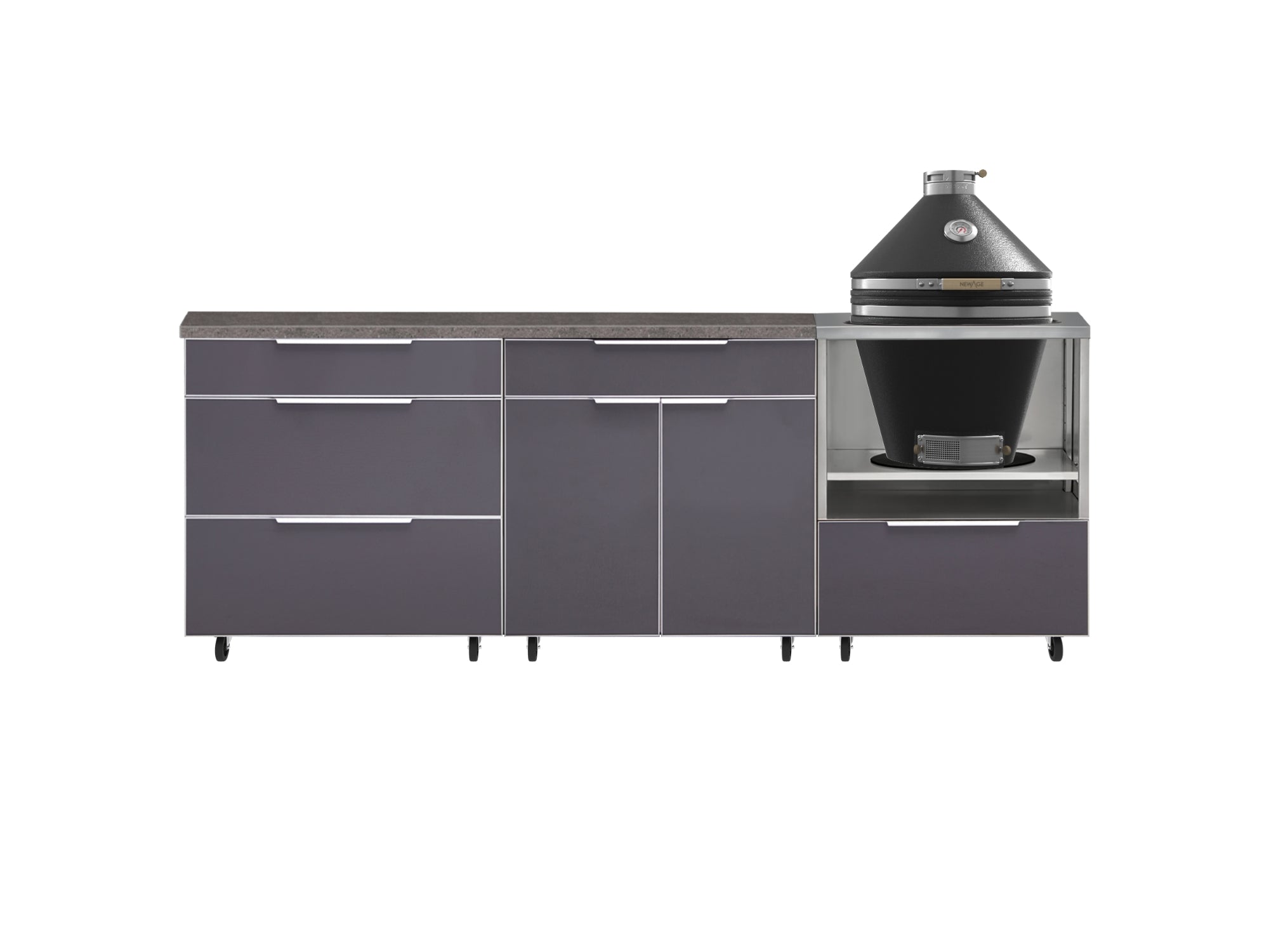 Newage Products Outdoor Kitchen Cabinets Slate Gray Aluminum 7-Piece Set With Kamado Cabinet, Countertop Only