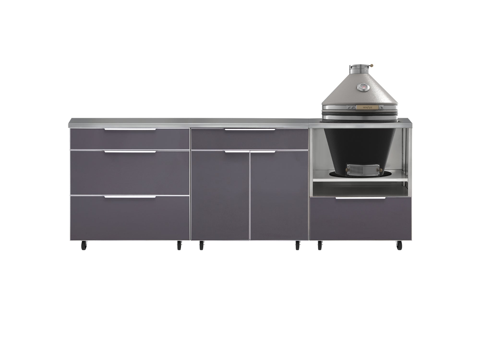 Newage Products Outdoor Kitchen Cabinets Slate Gray Aluminum 7-Piece Set With Kamado Cabinet, Countertop Only