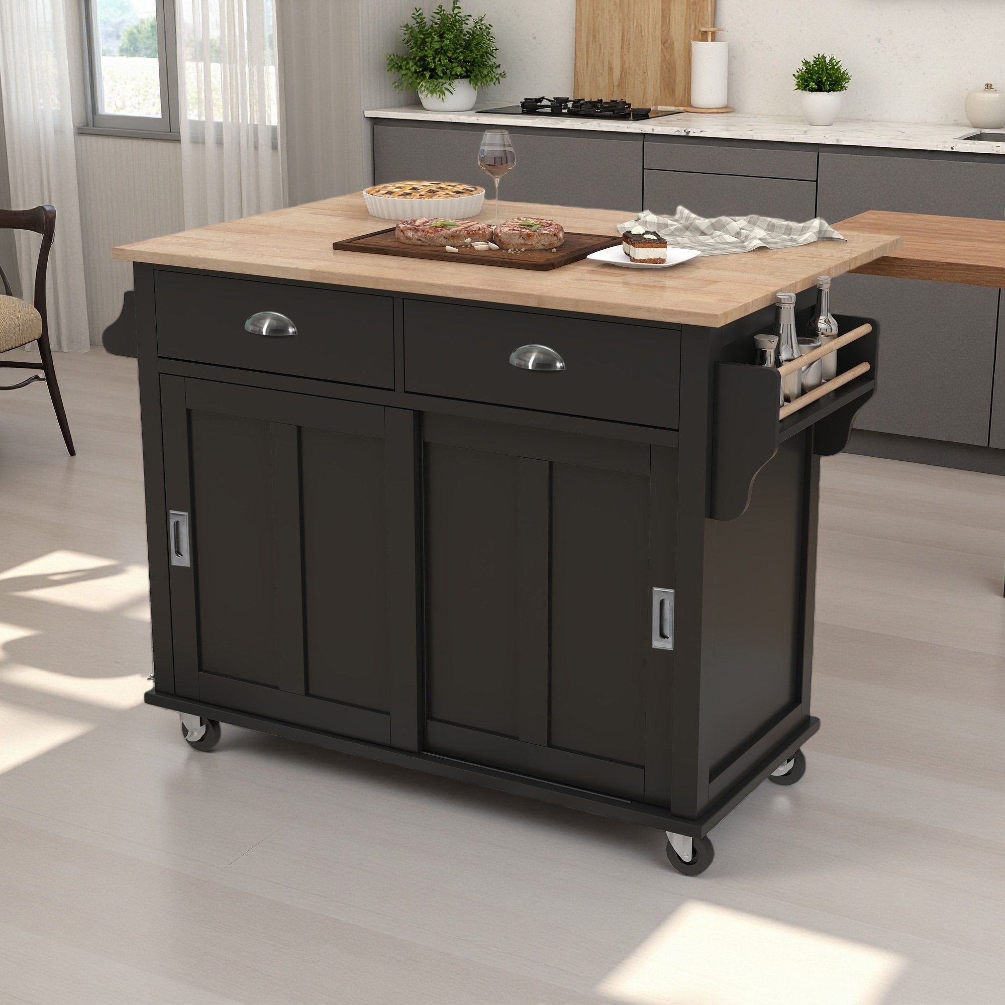 Kitchen Island Cart Wood Top - Portable Kitchen Storage Island with Drawers & Shelf