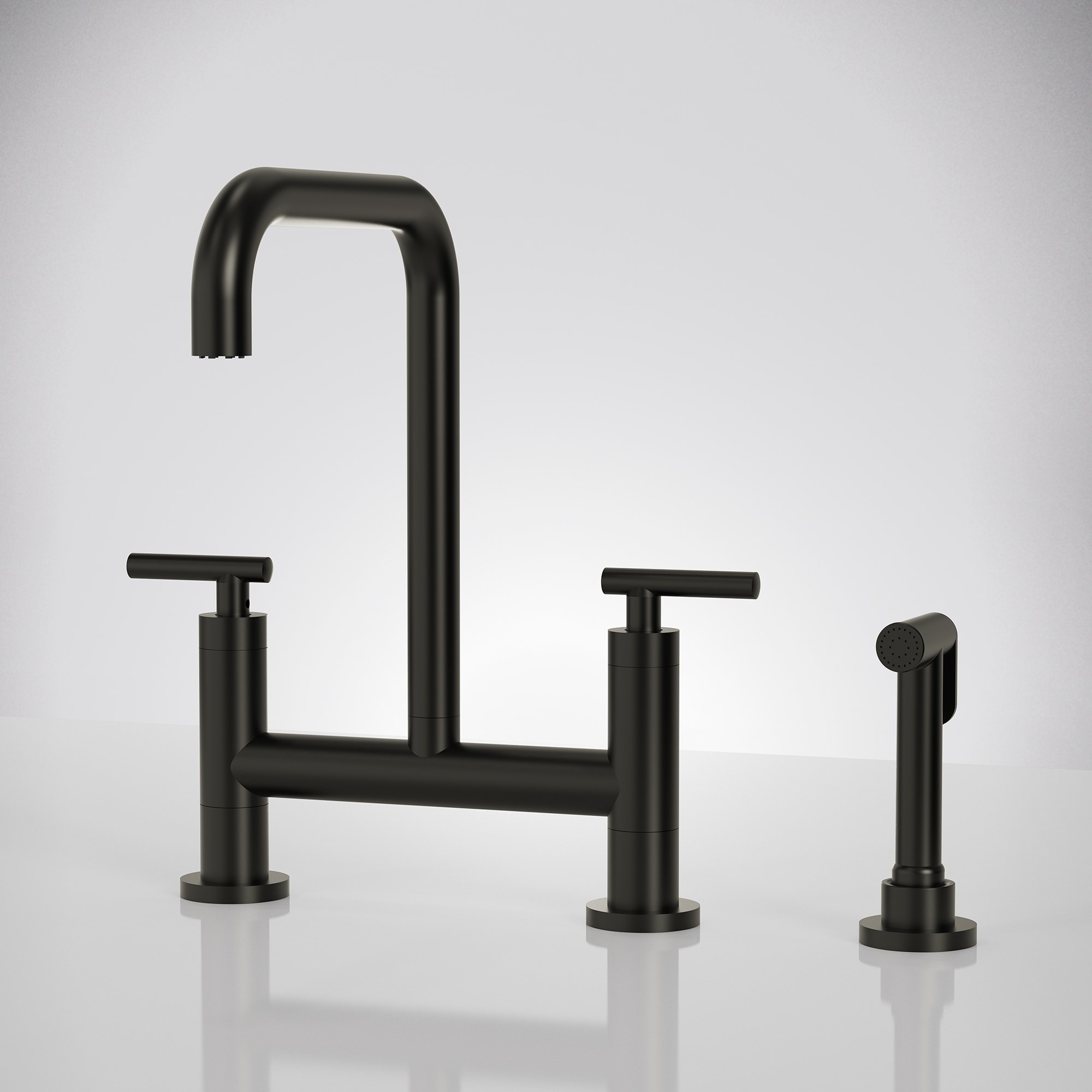 2-Handle Deck Mount Kitchen Faucet 2-Hole Bridge Kitchen Faucet with Side Sprayer