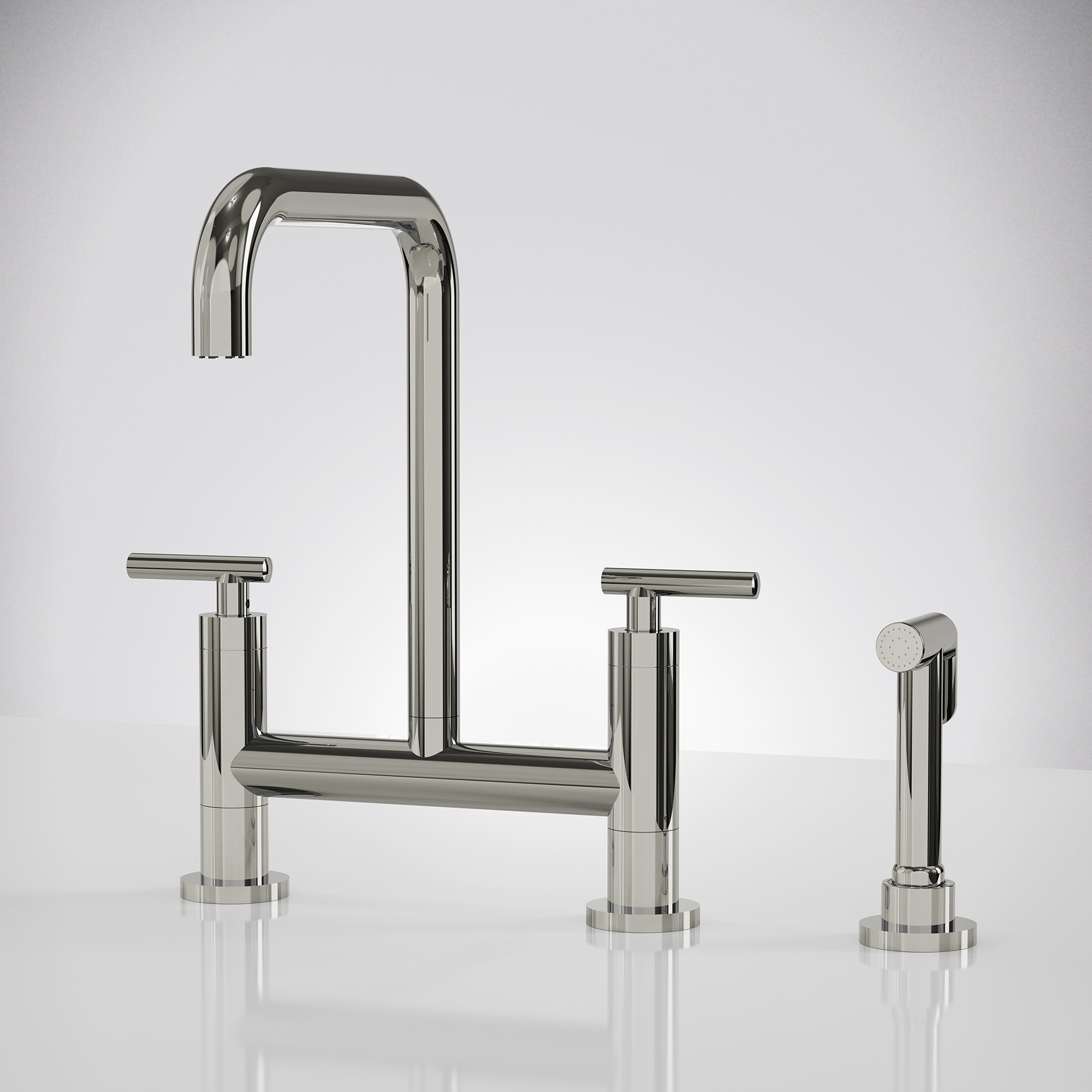 2-Handle Deck Mount Kitchen Faucet 2-Hole Bridge Kitchen Faucet with Side Sprayer