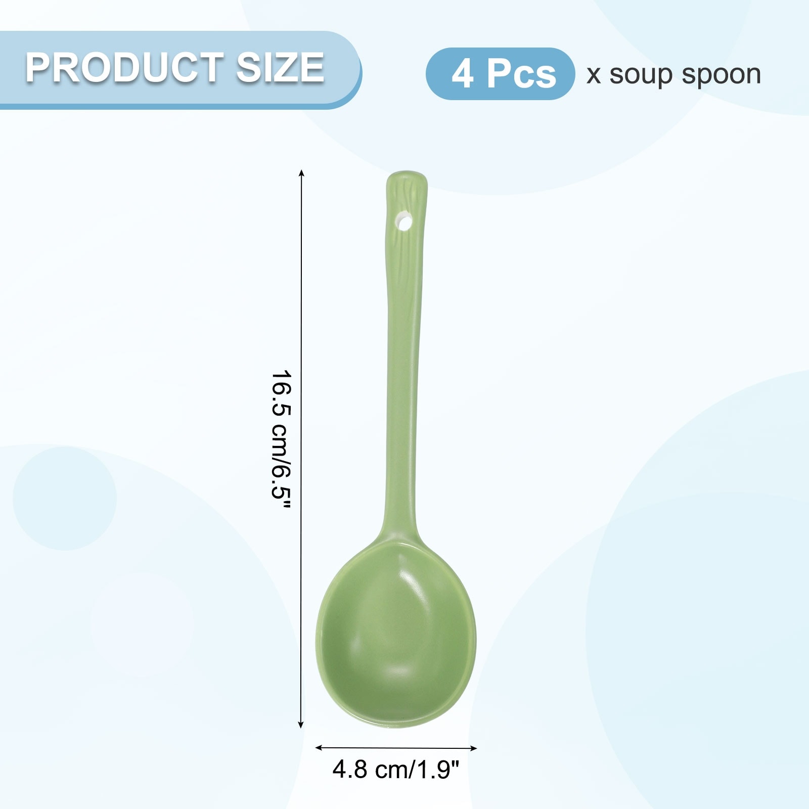 Ceramic Soup Spoons, Long Handle Dinner Serving Spoon for Noodles - 6.5 inch