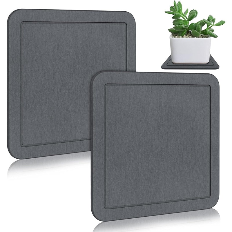 Diatomite Plant Saucer, Quick-Dry Absorbent Stone Tray with Deep Grooves for Indoor Plants, Soap & Sponge Holder - 12