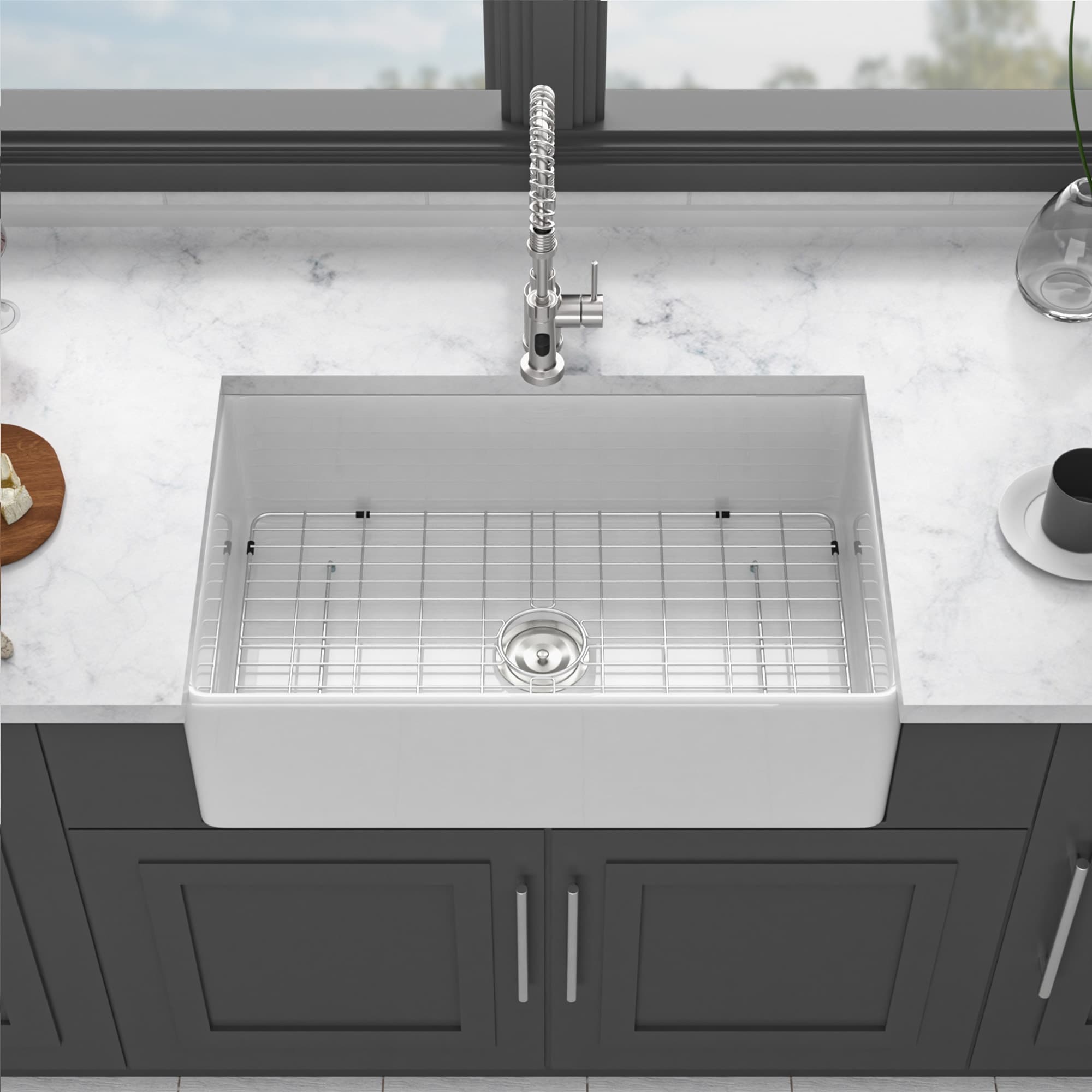 White Kitchen Sink - 33 x 18 x 10 inch White Porcelain Ceramic Single Bowl Reversible Design Kitchen Sink