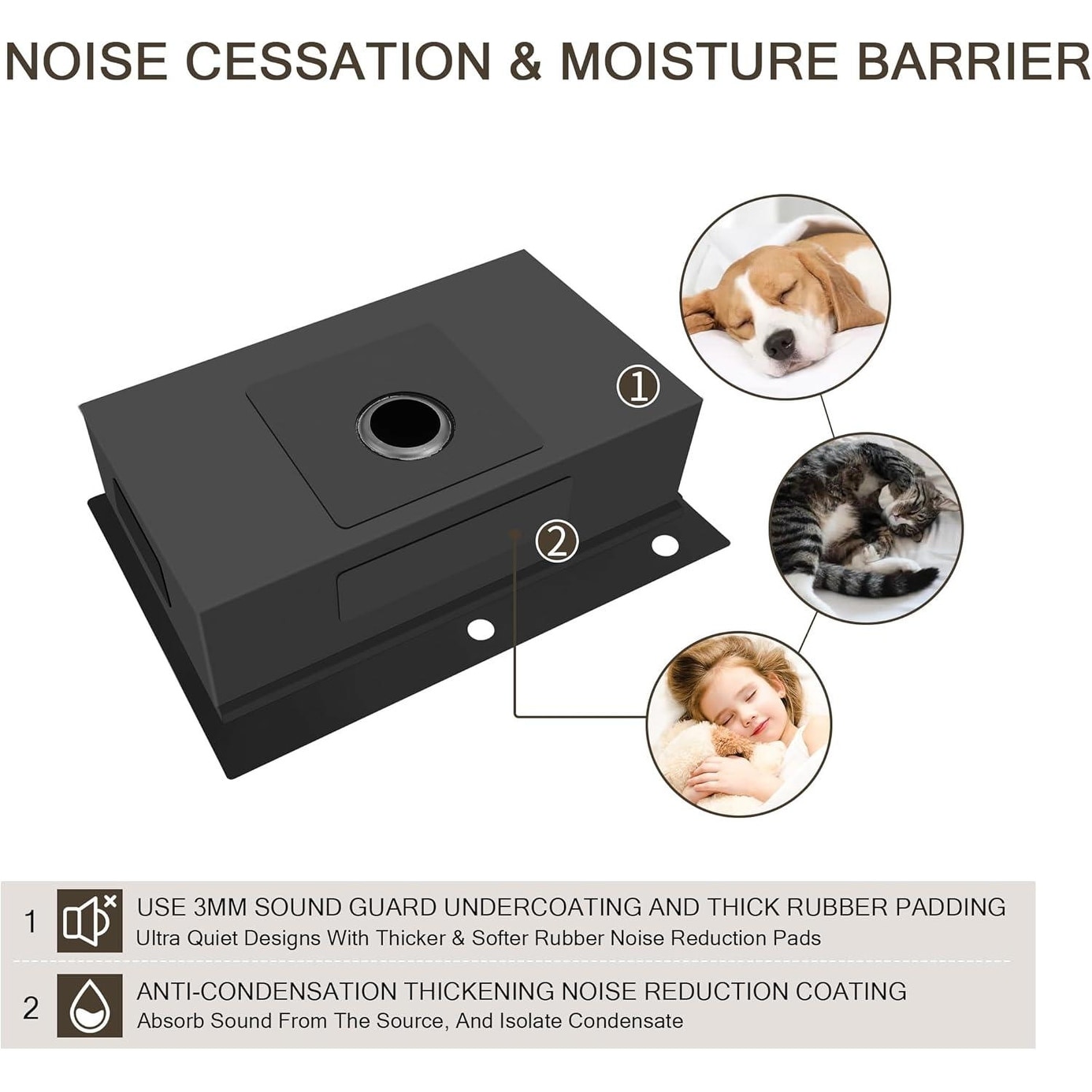 28" Undermount 16 Gauge Single Bowl Stainless Steel Kitchen Sink in Gunmetal Black - 28'' x 18'' x 10''
