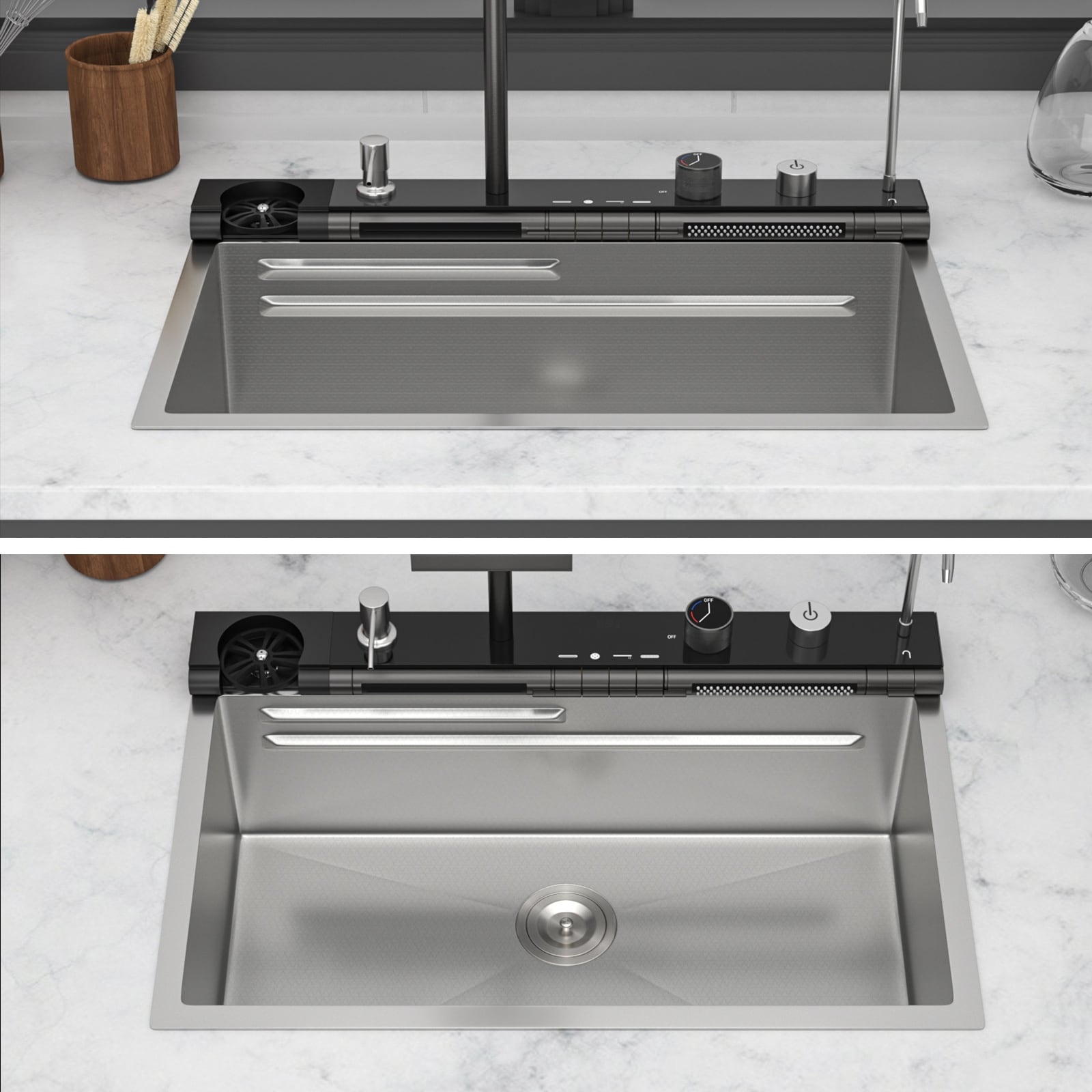 30" Drop-In 16 Gauge Single Bowl Stainless Steel Smart Digital Kitchen Sink with Faucet in Brushed Nickel - 30'' x 19'' x 9''