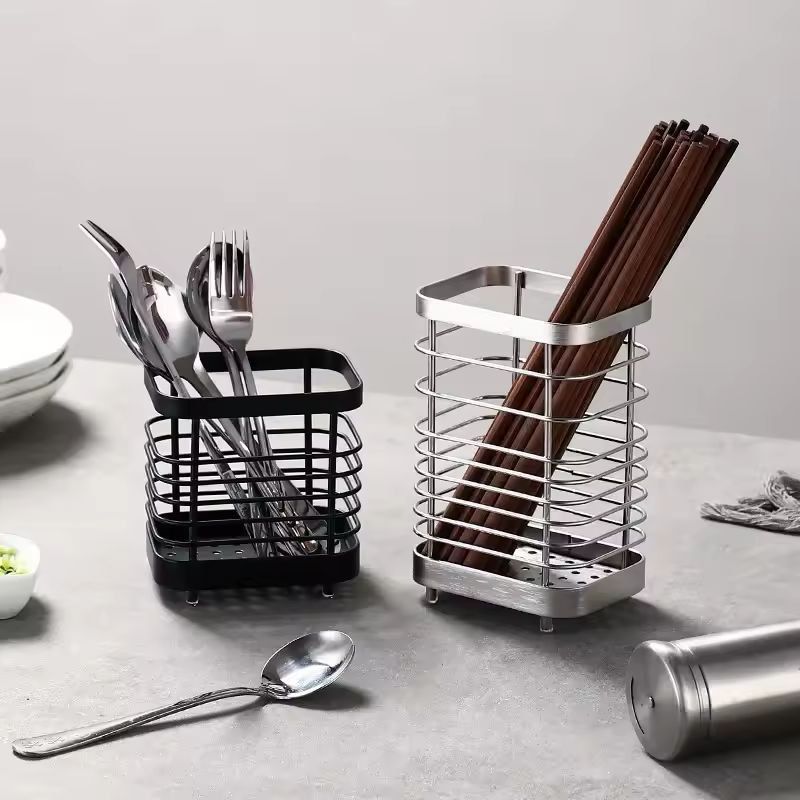 Stainless Steel Hanging Kitchen Cutlery Organizer Rack black Small