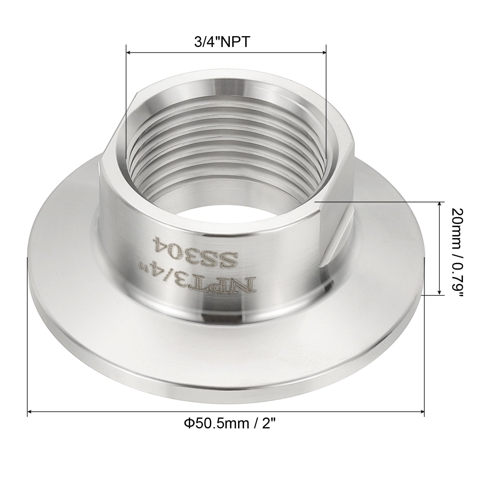 TC Tri Clamps Adaptor, Tri Clamps Fittings to Female Thread Adaptor Sanitary Stainless Steel for Food Beverage, - Silver