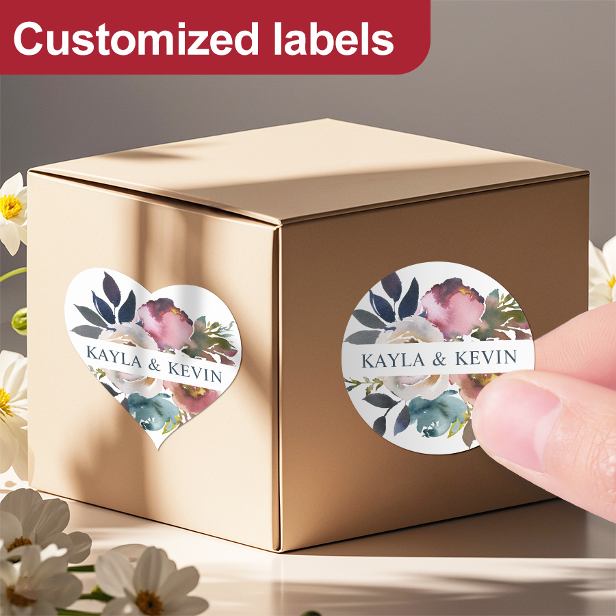 Floral Customized Wedding Labels, Vinyl Stickers For Party Decorations, Gift Box Decals, DIY Craft Supplies round 36pcs 4x4cm