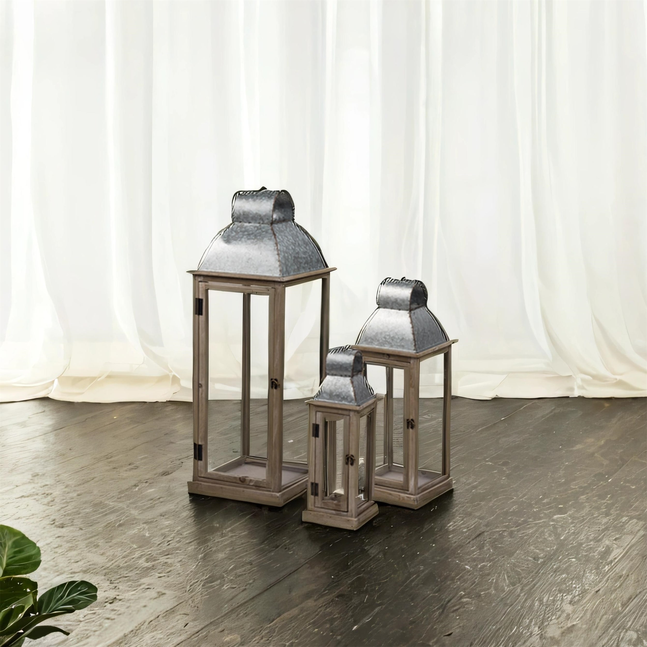 Set of 3 Silver & Wood Lamp Shade - L:11x32" M:8.5x23" S:6x17"