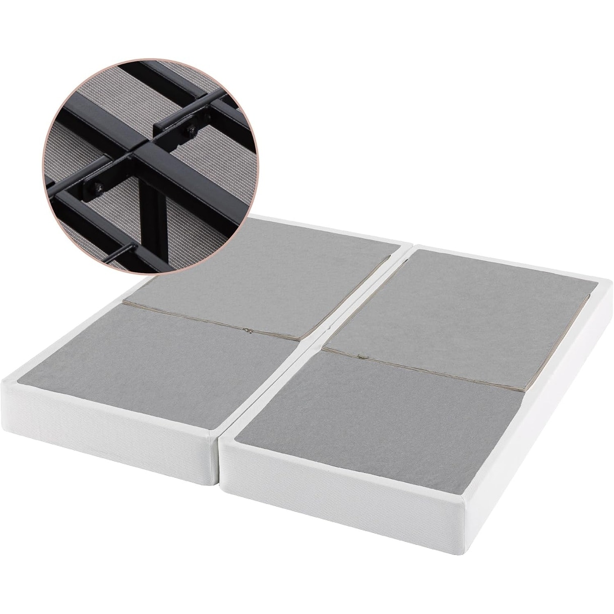 9 Inch No Assembly Metal Box Spring, Sturdy Mattress Foundation, Split King, White