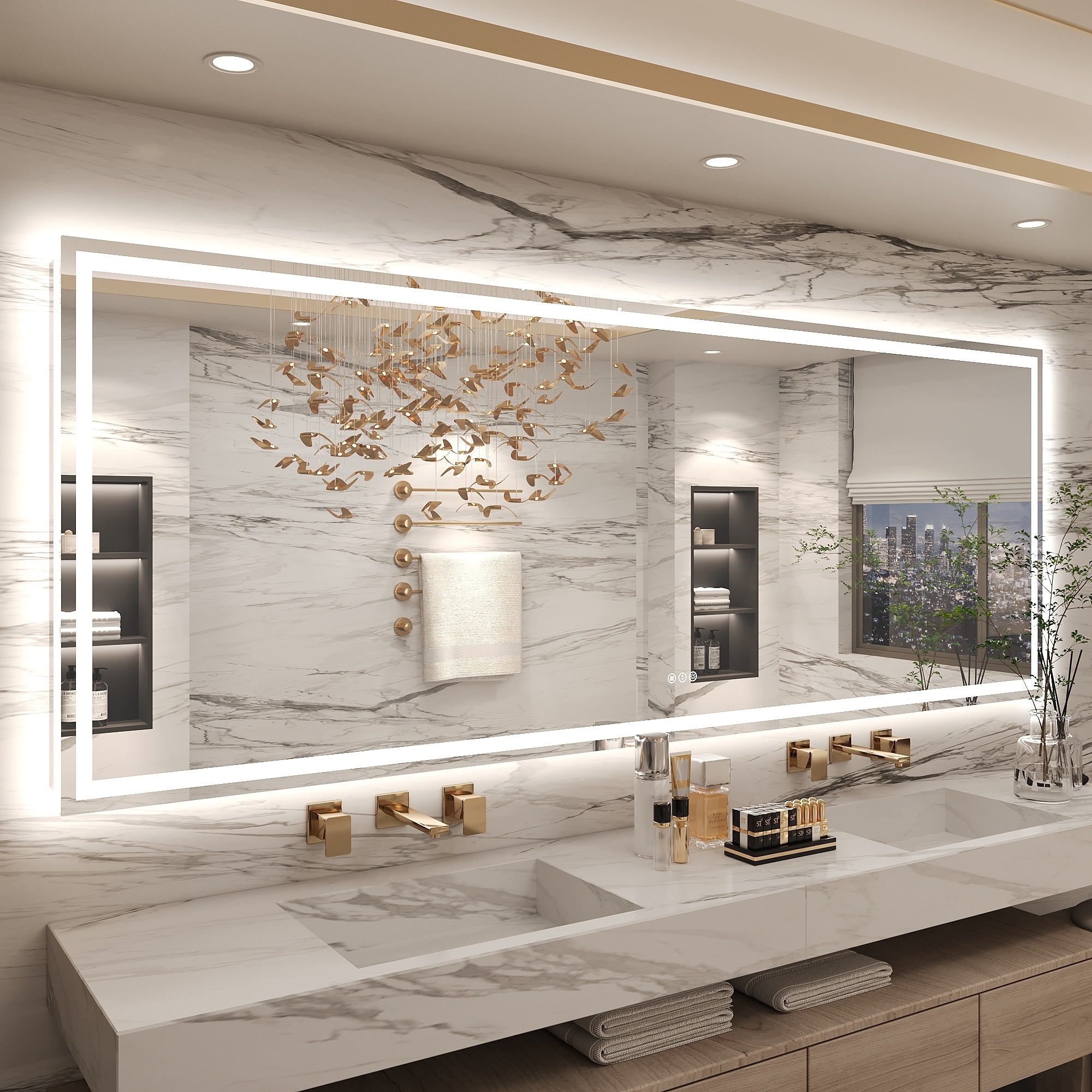 Rectangular Brushed gold Framed LED Mirror Bathroom Vanity Mirror