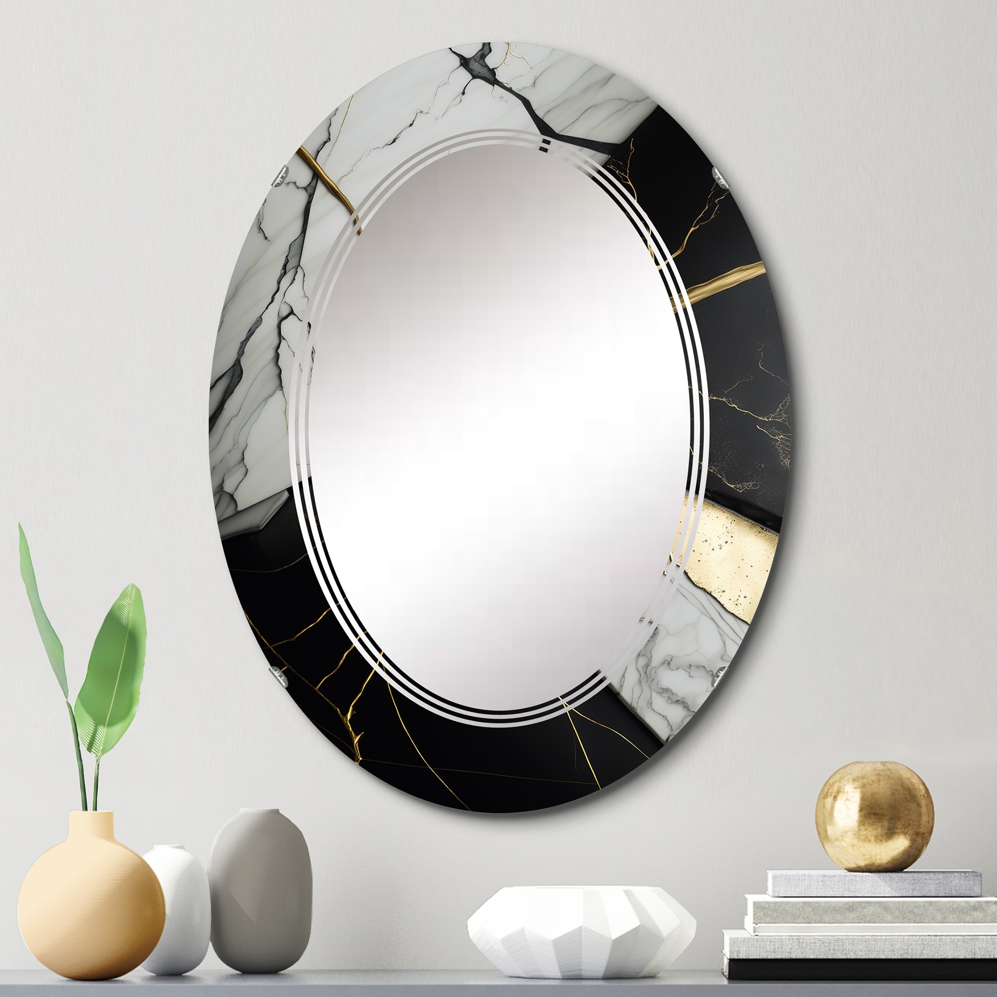 Designart 'Abstract Geode Black IV' Printed Abstract Marble Wall Mirror