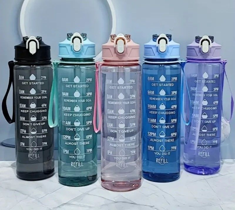 800 Ml 27 Oz Large Capacity Sports Water Bottle Leak Proof Plastic Drinking Cup With Time Scale pink