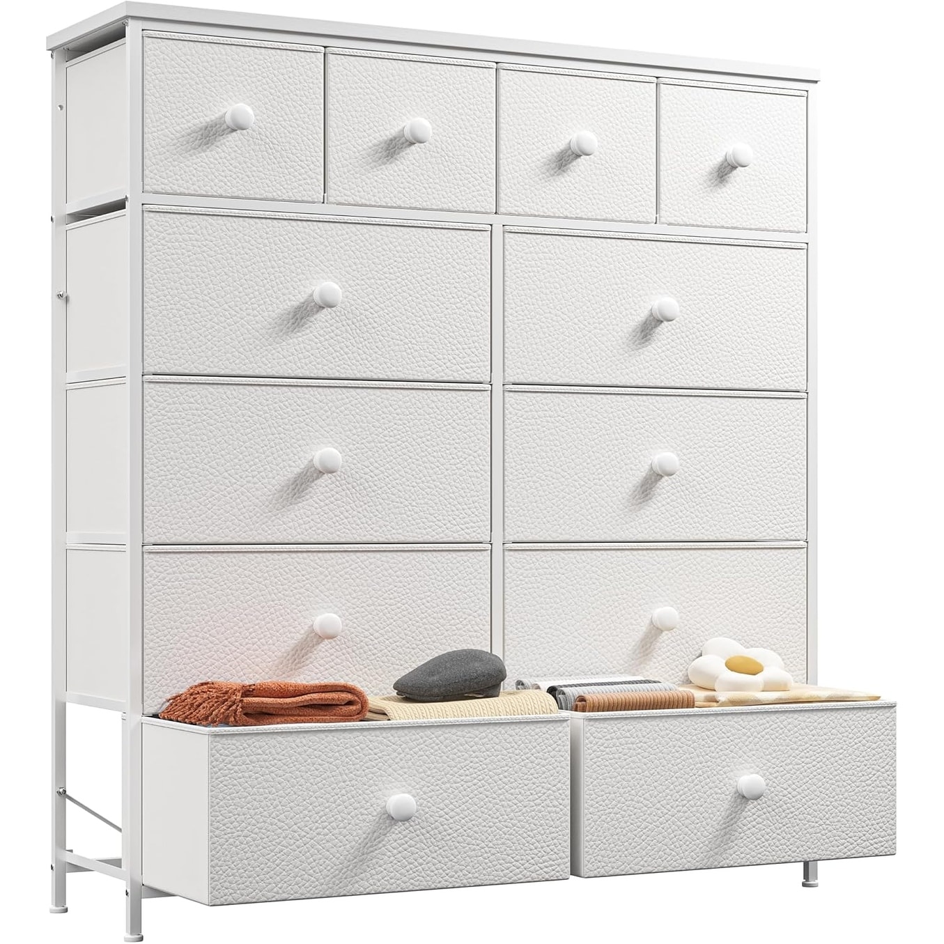 12-Drawer Fabric Dresser with Metal Frame and Wood Top for Bedroom or Entryway