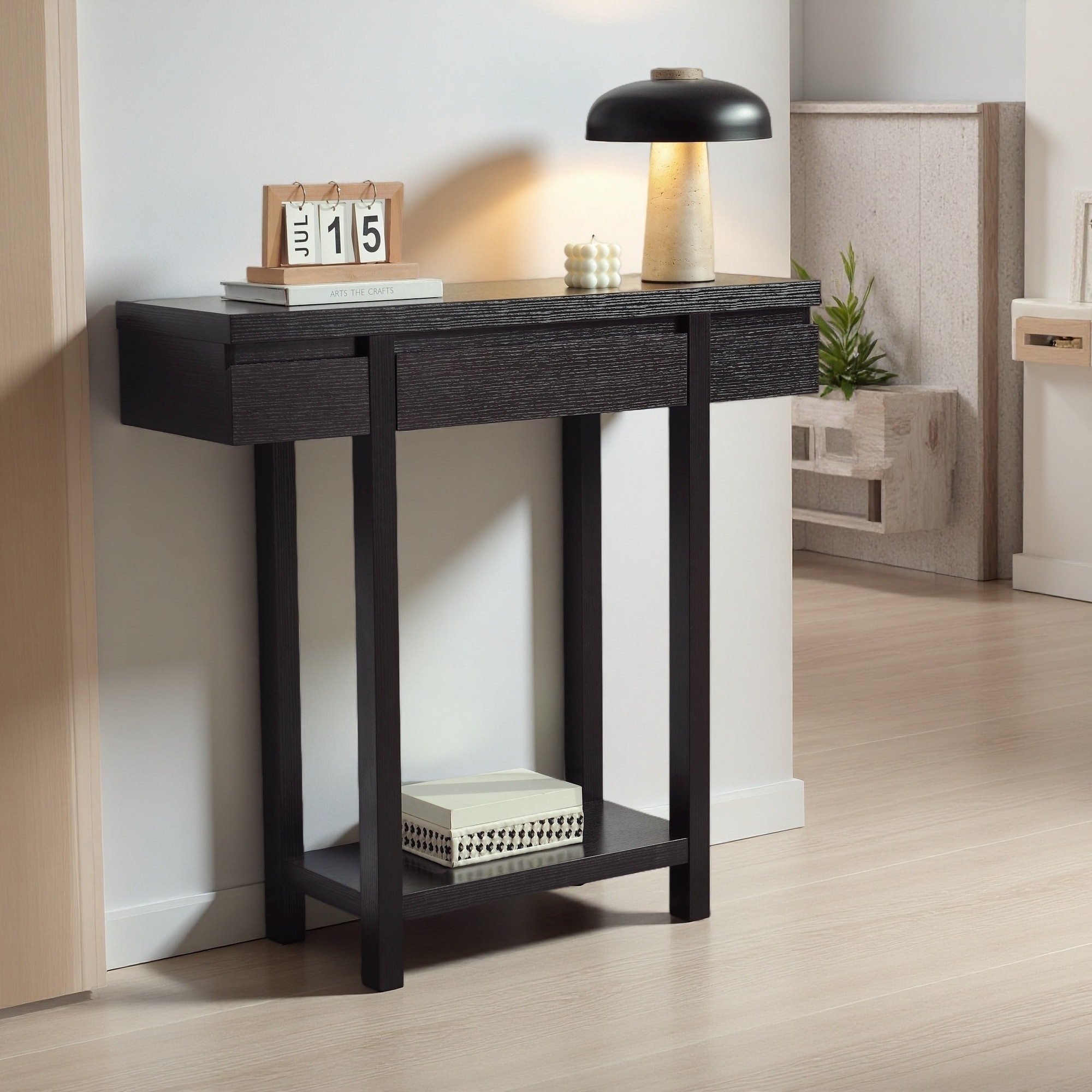 36" Compact Console Table with 1 Drawer & Floating Shelf