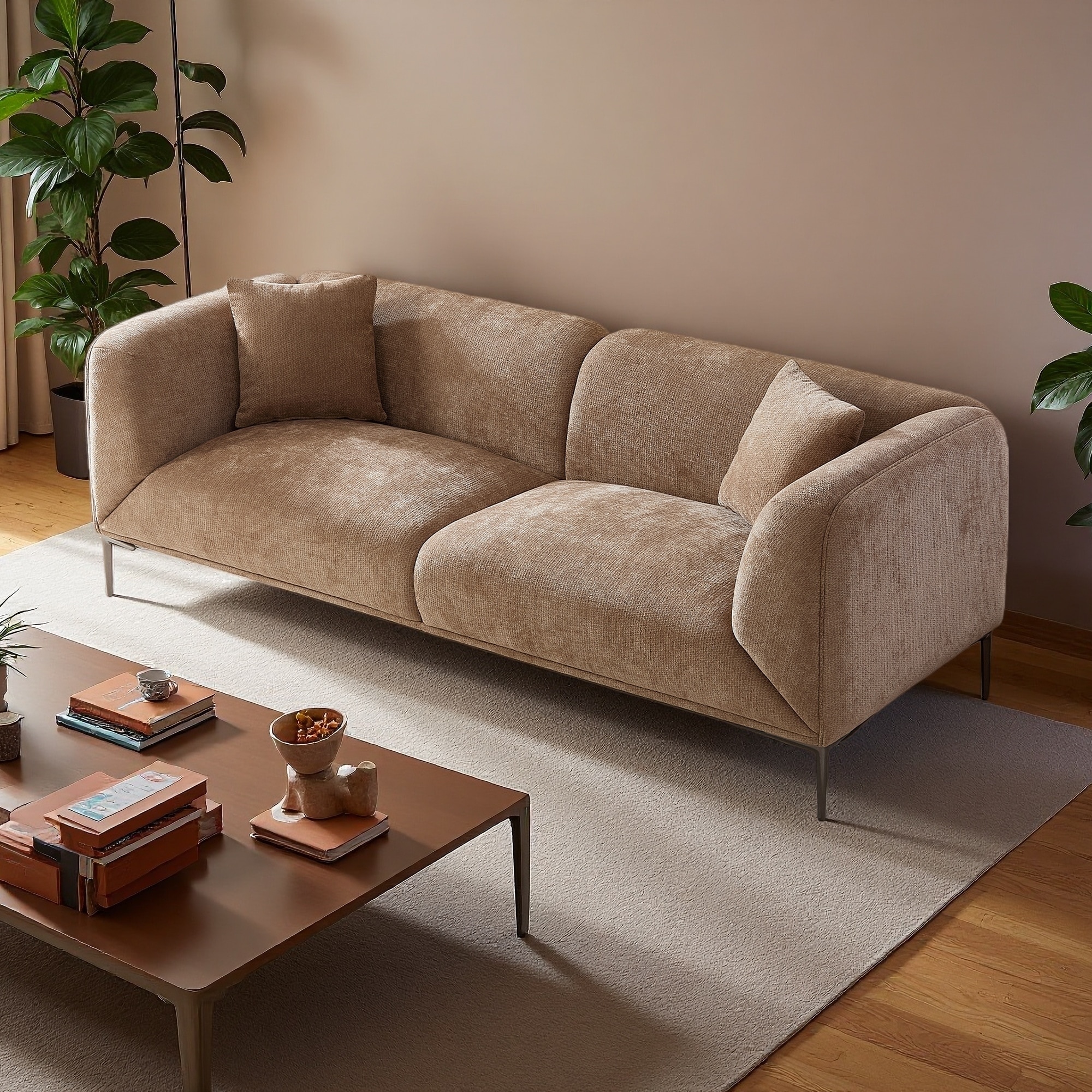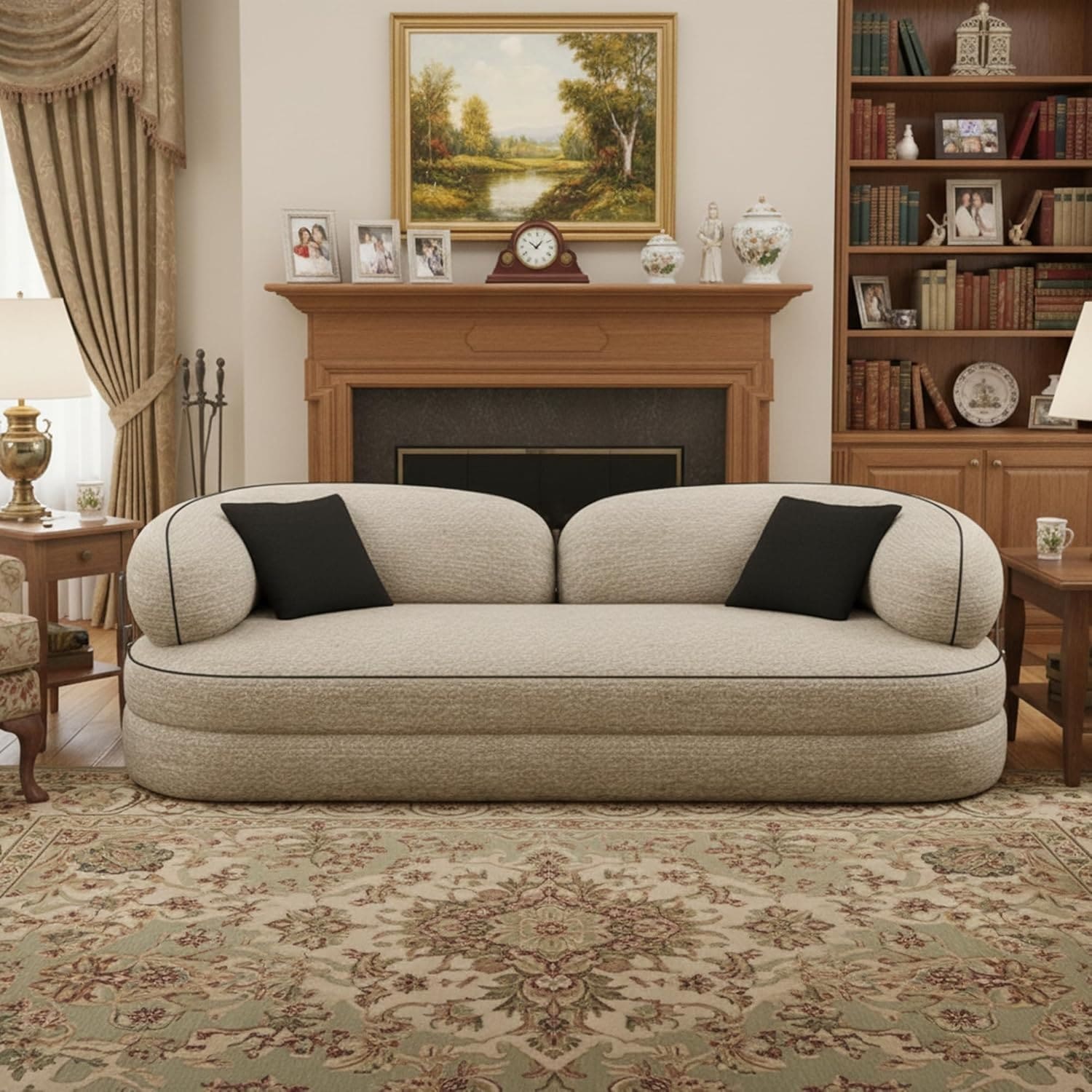 82.6" Boucle 3-Seater Sofa with Curved Backrest & Cushion