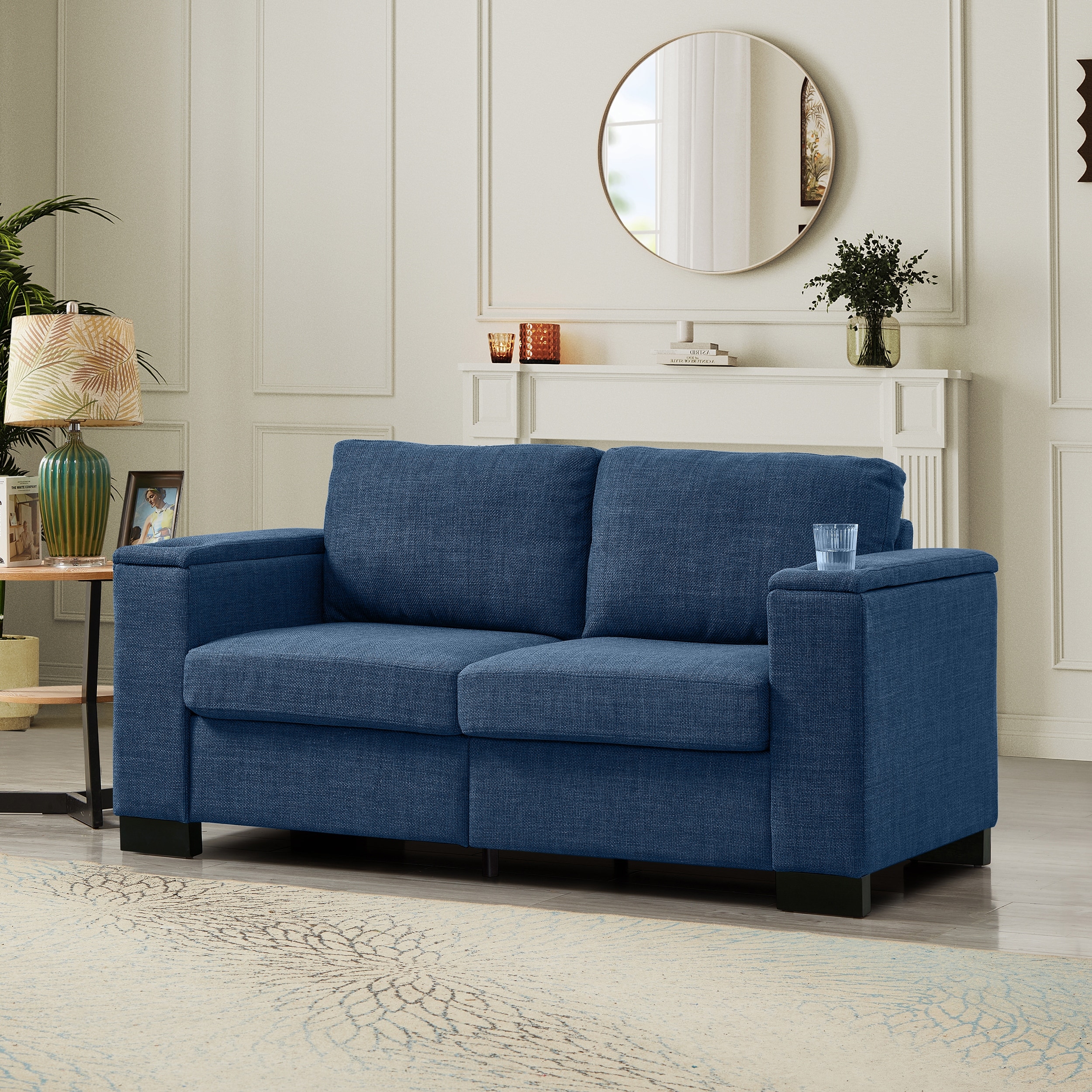 67.7" Modern Style Loveseat Fabric Couch,Square Arm Sofa With Cup Holder,Storage Sofa,Upholstered Polyester
