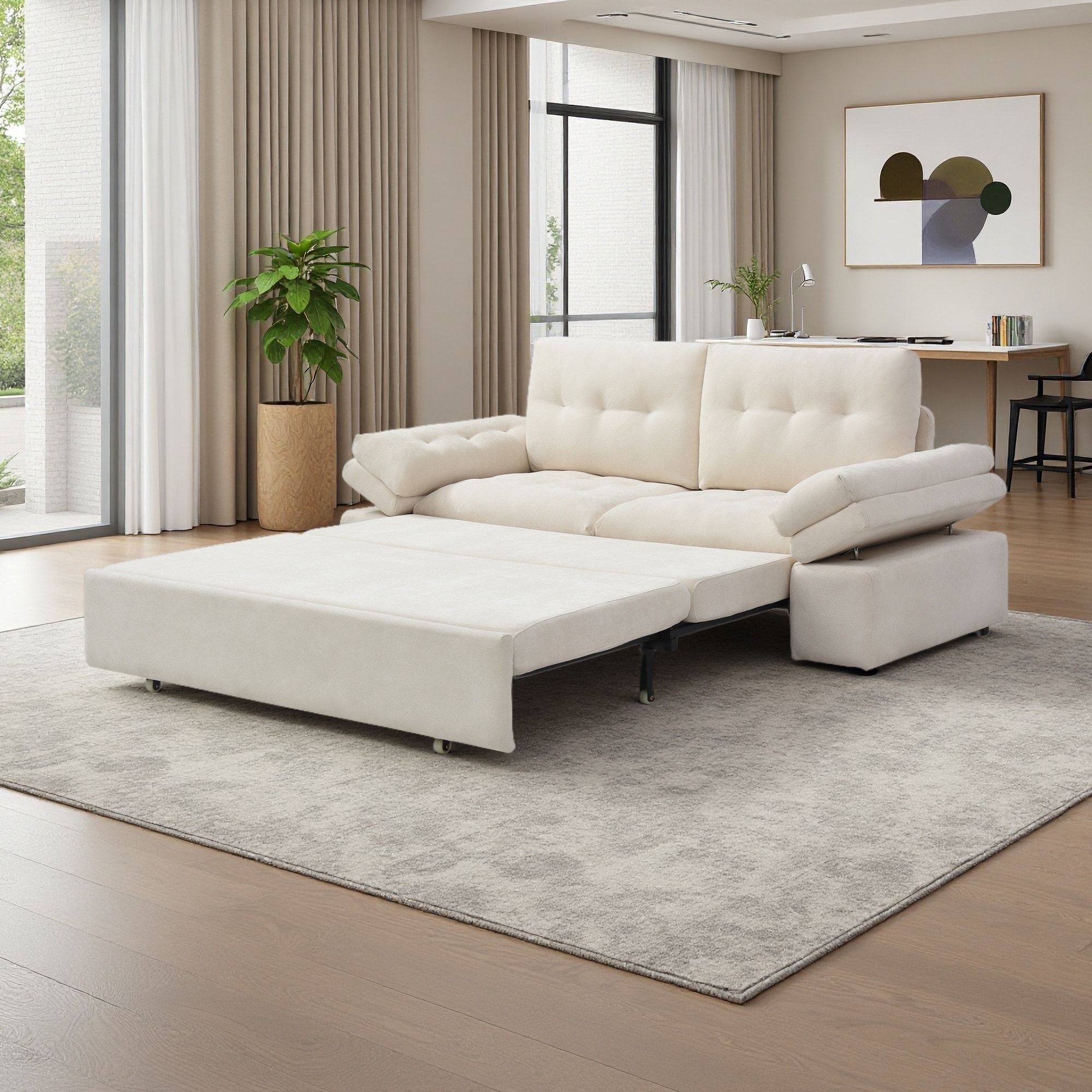 77" 3-in-1 Sleeper Sofa Bed with Teddy Chaise & Adjustable Arms