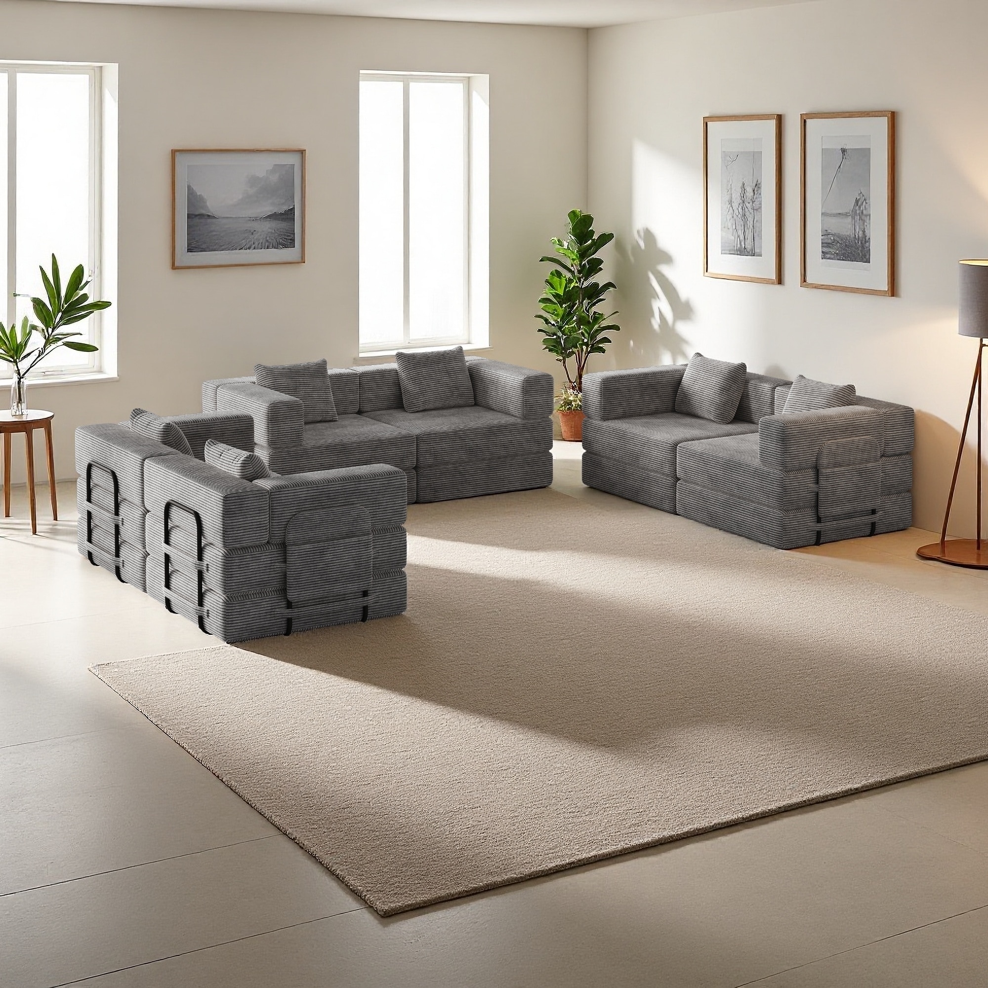 73.6 Ergonomic 3 In 1 Sofa Bed Corduroy Convertible Sleeper L Shaped Sofa Bed 800lb Capacity Side Storage USB Charging