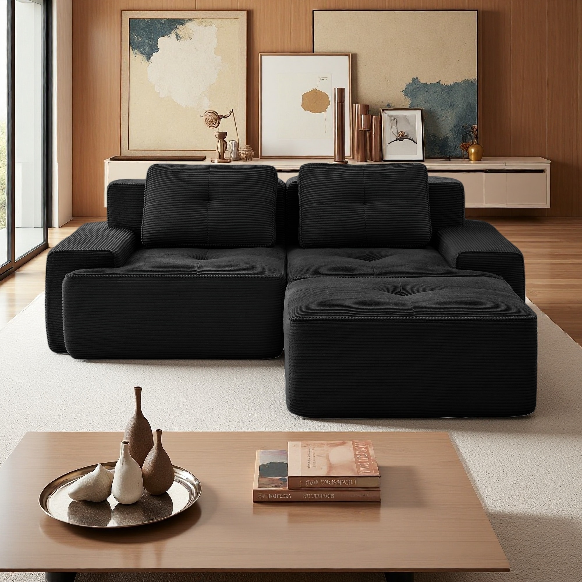 81.9" Corduroy L-Shaped Modular Sectional Sofa with Deep Seat & Ottoman