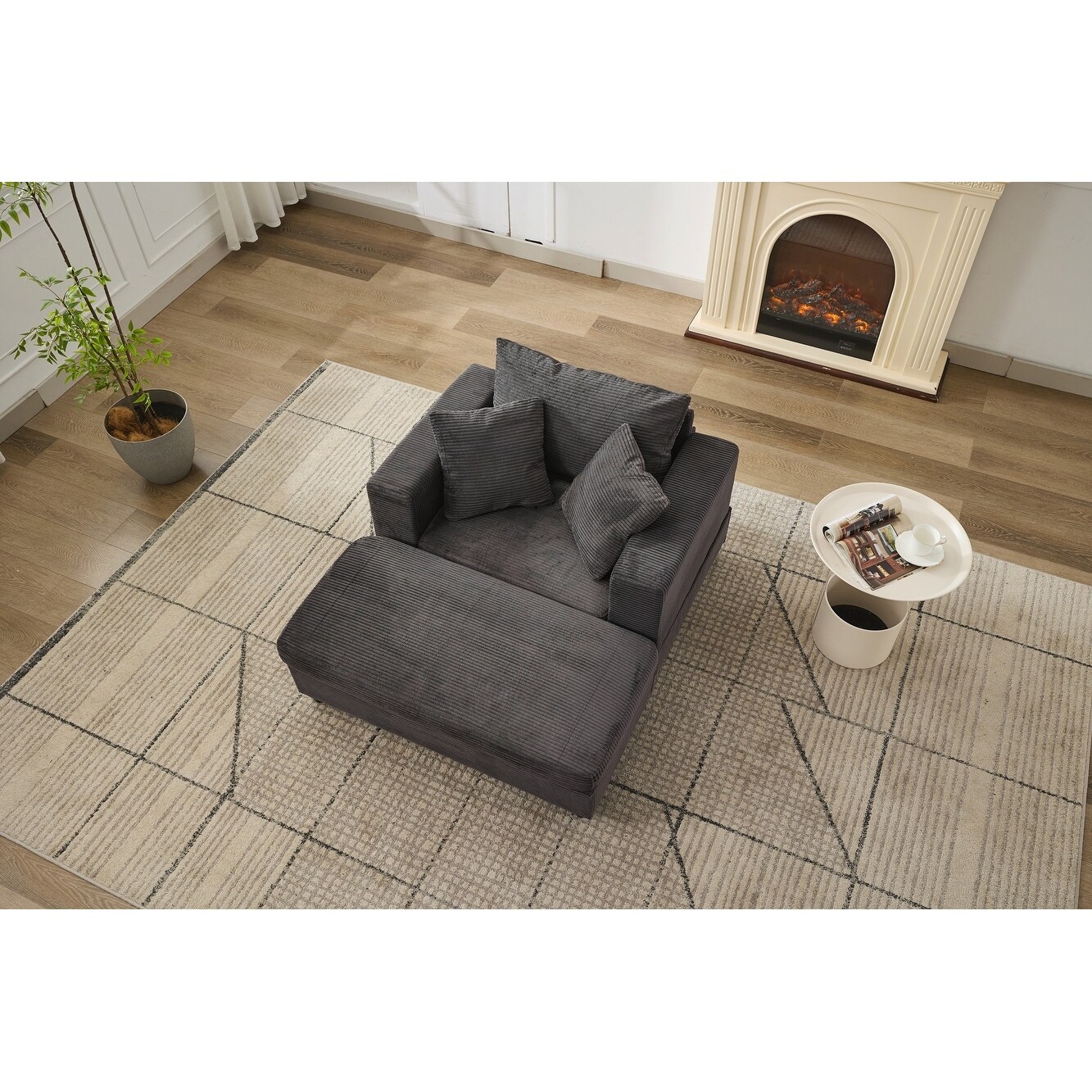 55" Oversized Chaise Lounge Sofa with Storage Ottoman, Modern Corduroy Single Reading Sofa with USB Ports and Phone Holder