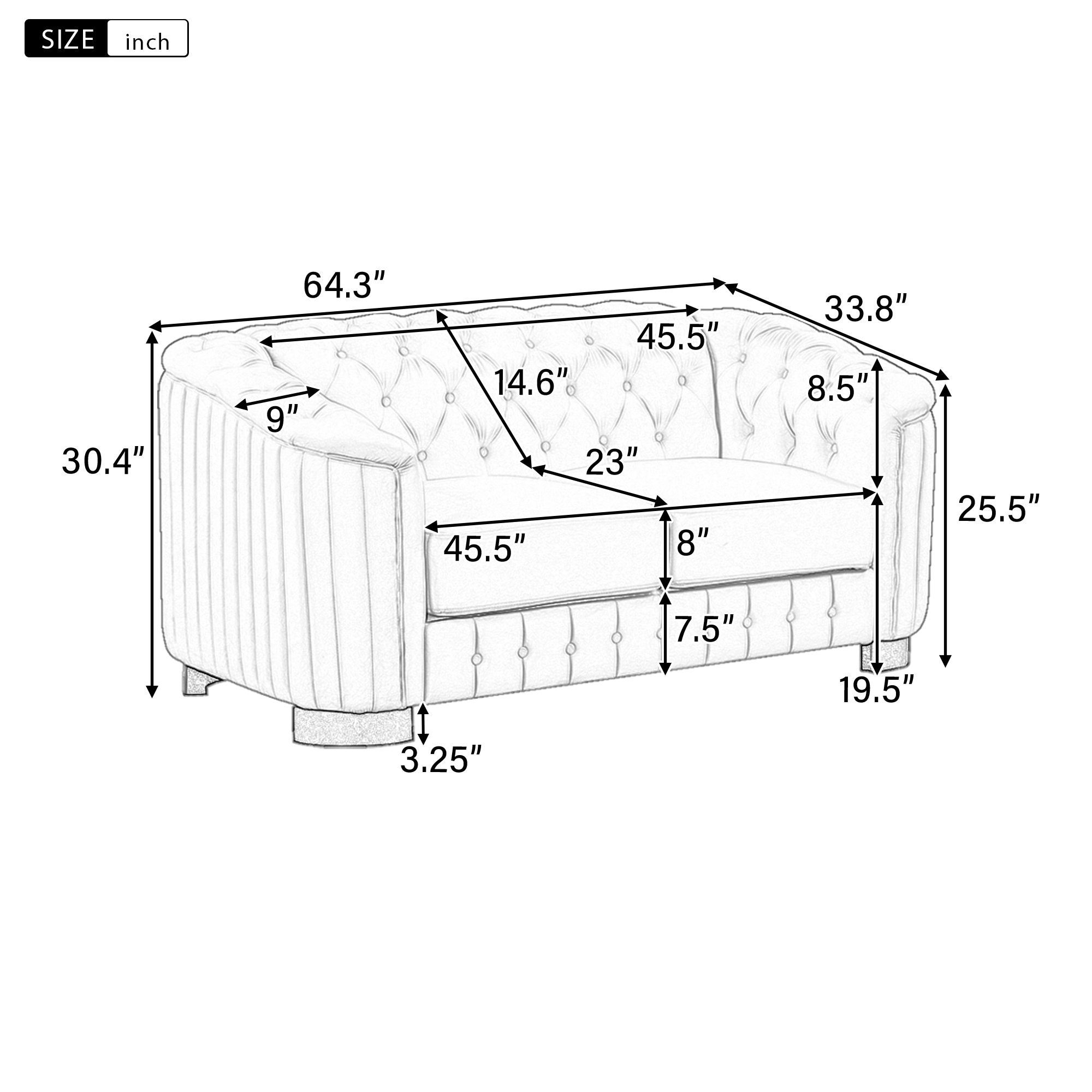 64.3" Velvet Upholstered Loveseat Sofa, Modern Loveseat Sofa With Thick Removable Seat Cushion, 2-Person Loveseat Sofa