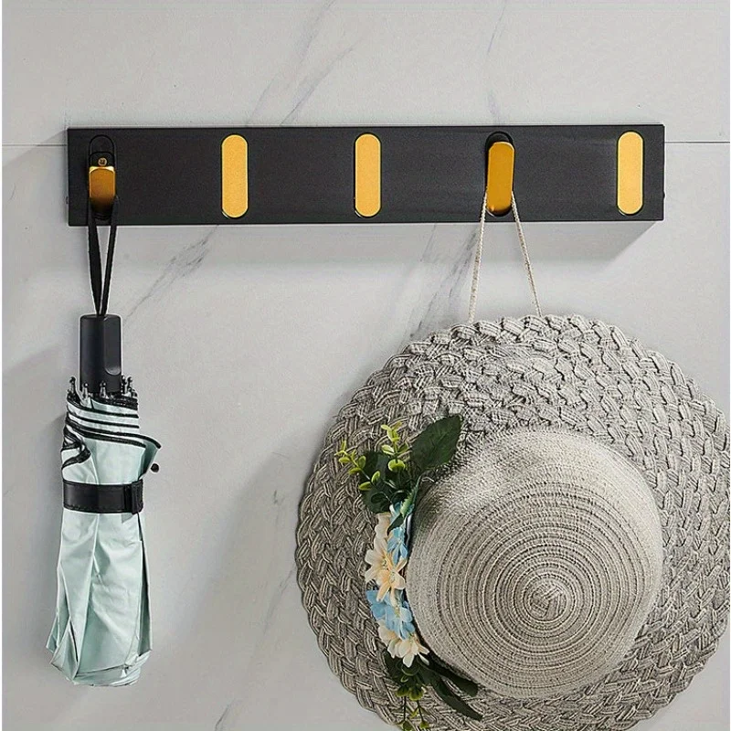 Folding Coat Hook For Bathroom, Invisible Wall Mounted Hook, Fitting Room Behind The Door, No Punching, Space Saving Row black golden