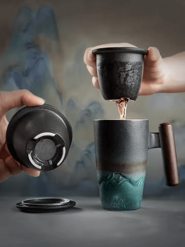 Handmade Ceramic Coffee Mug Large Retro Tea Cup black White