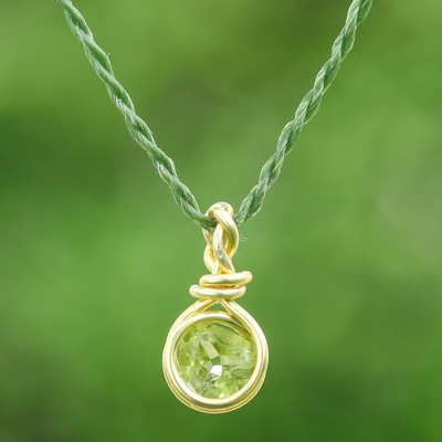 'Gold-Plated Copper Wire Pendant Necklace with Peridot Stone'