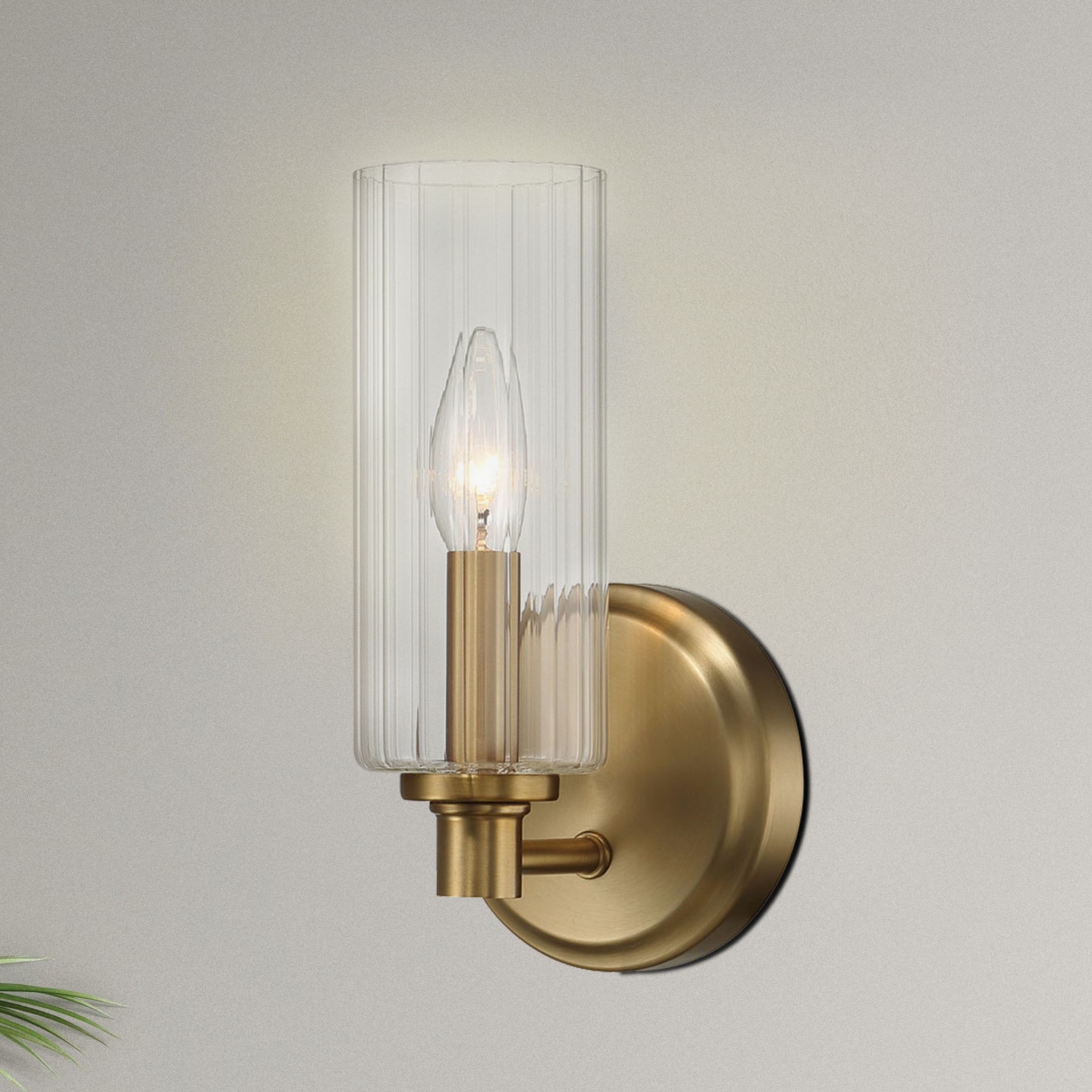 Sunny Ribbed Glass Wall Sconce with Brushed Bronze Base