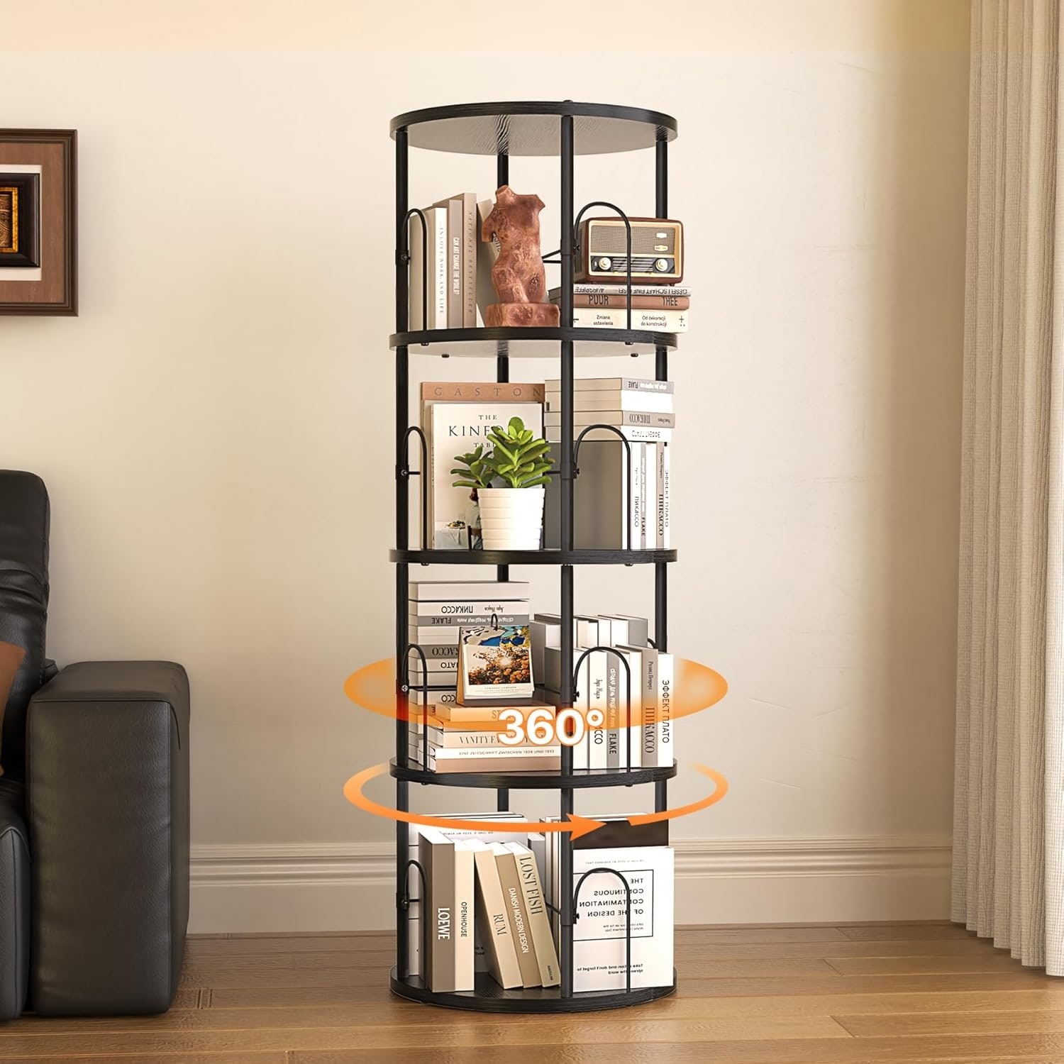 360° Rotating 4-Tier Bookshelf Tower, Space-Saving Spinning Bookcase for Living Room, Bedroom, Office