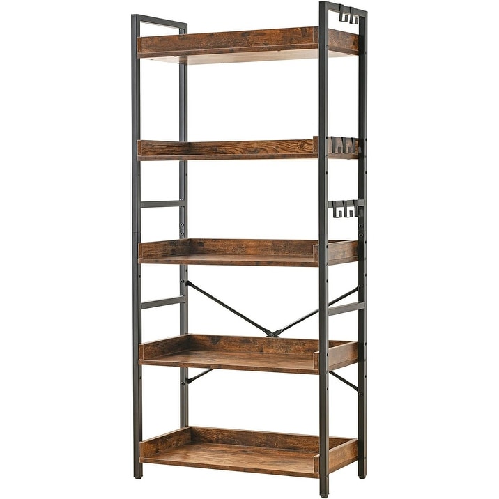 Adjustable 5-Tier Rustic Farmhouse Bookcase with Metal Frame, Open Shelf for Home Office Living Room Bedroom