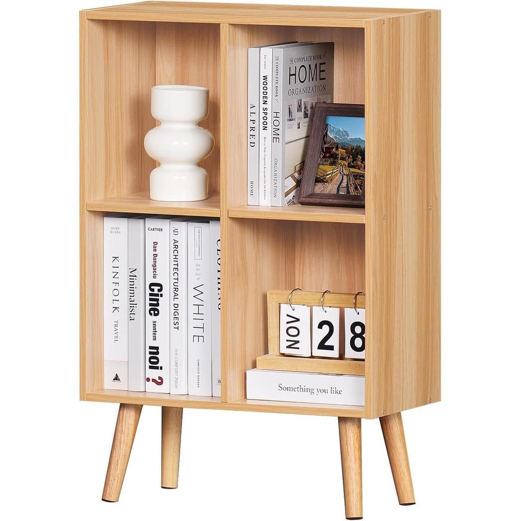 2-Tier Natural Wood Cube Bookshelf for Kids, Modern Storage Organizer with Legs, Toy Display Cabinet for Bedroom or Living Room