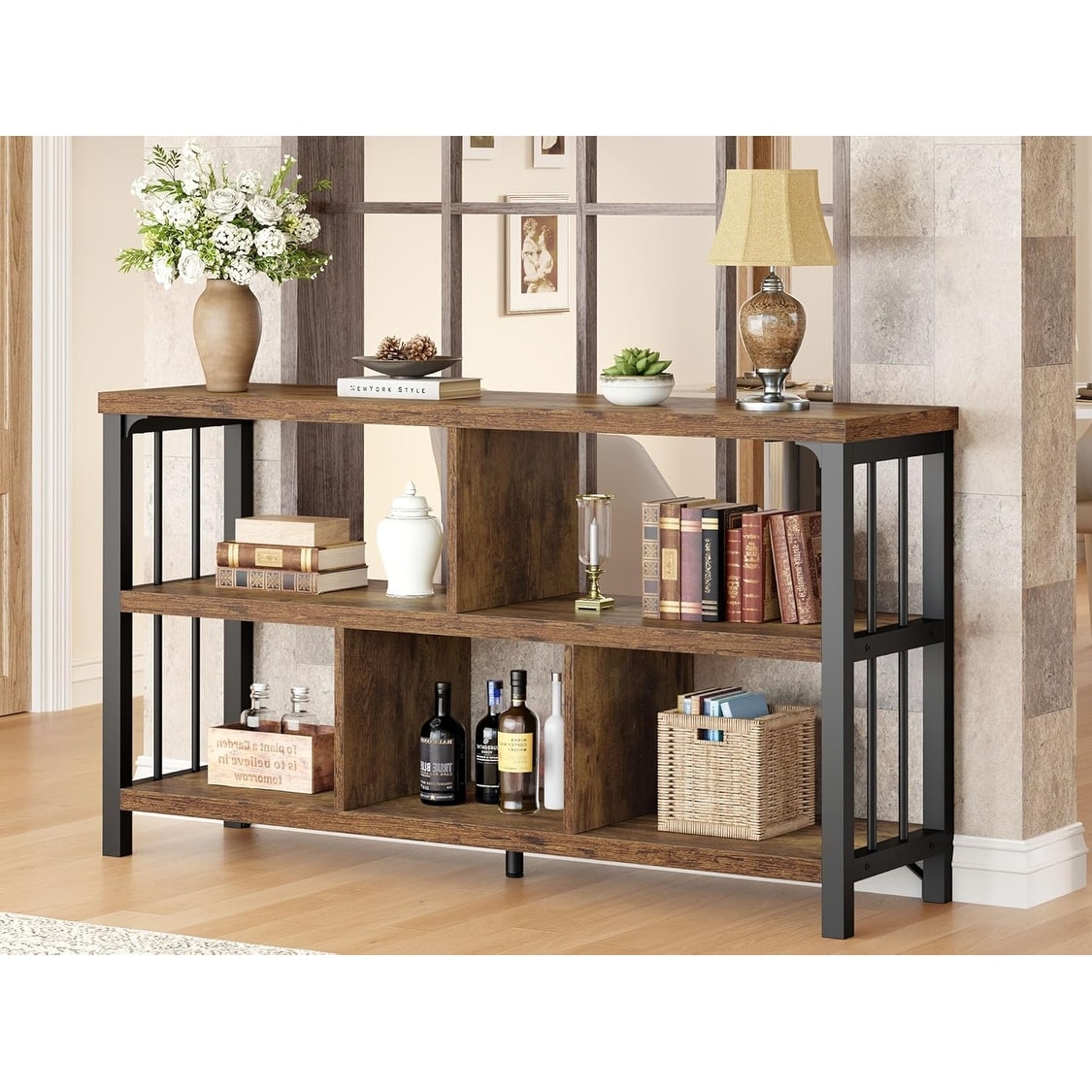 Modern 3-Tier Open Book Shelf, Wood and Metal 5-Cube Storage Organizer, Rustic Brown, 47 Inch