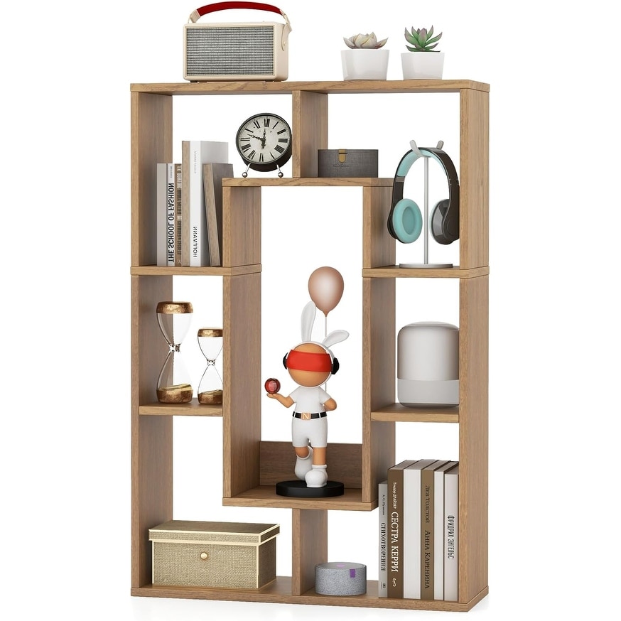 35.5" Geometric Wooden Bookshelf with 7 Cubes, Anti-Toppling, for Living Room, Study, Natural