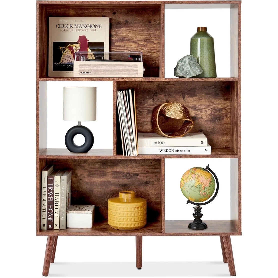 3-Tier Mid-Century Modern Wooden Bookcase with Removable Back Panels, 6-Cube Organizer for Home Decor