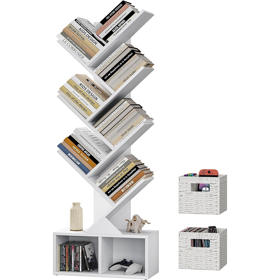 6-Tier Tree Design Bookshelf with Storage, Tall Narrow Bookcase for Books, CDs, Decor - White