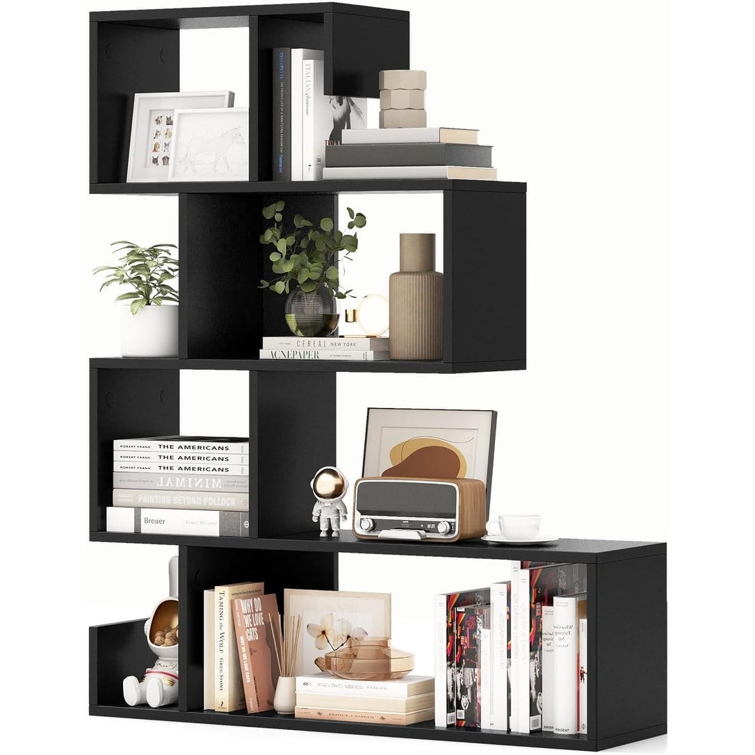 Modern 5-Tier S-Shaped Bookshelf with Anti-Toppling Kits, Freestanding Storage Rack for Living Room, Study, Home, Office, Black