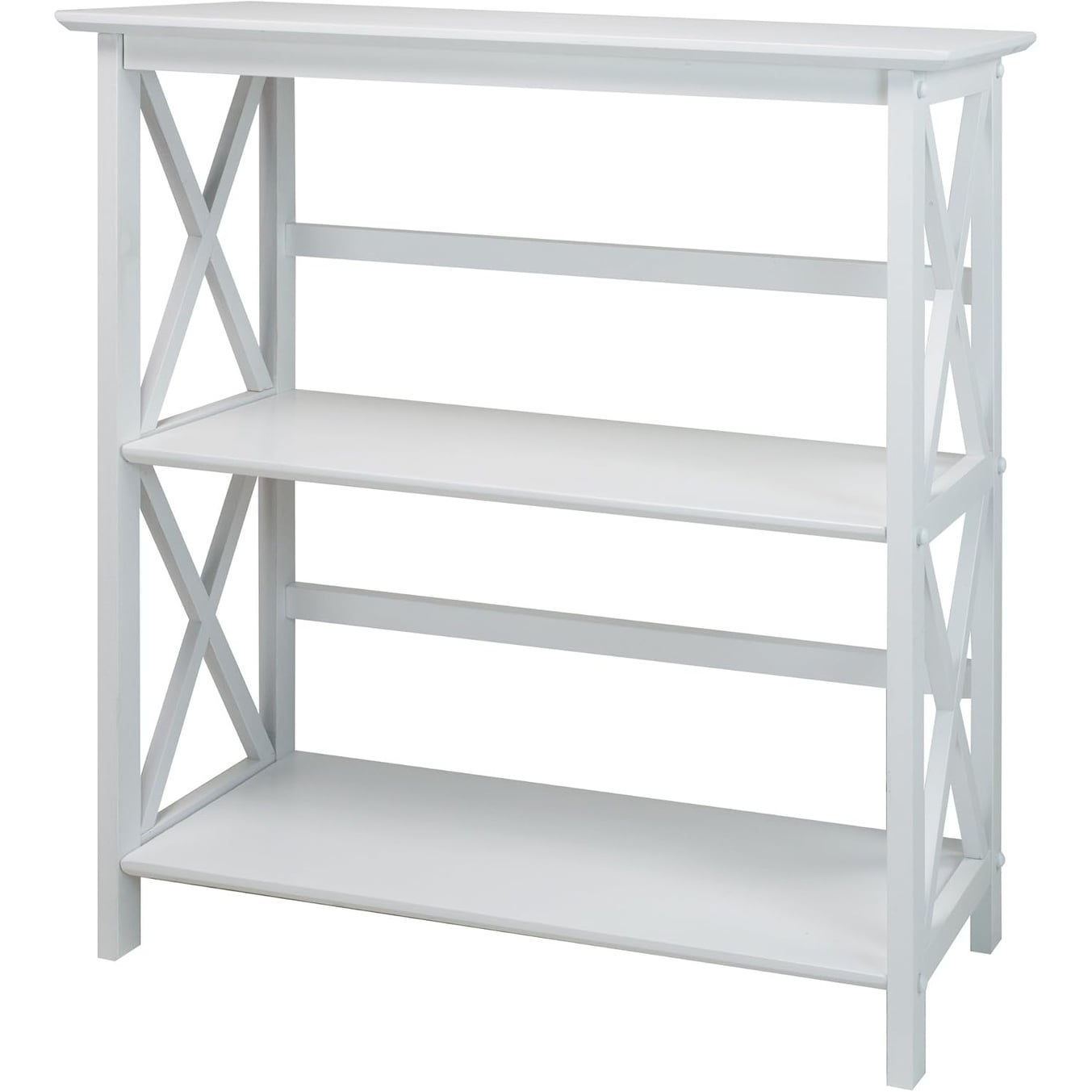 3-Shelf Bookcase with X-Design, White Finish, Solid Wood Construction, Easy Assembly